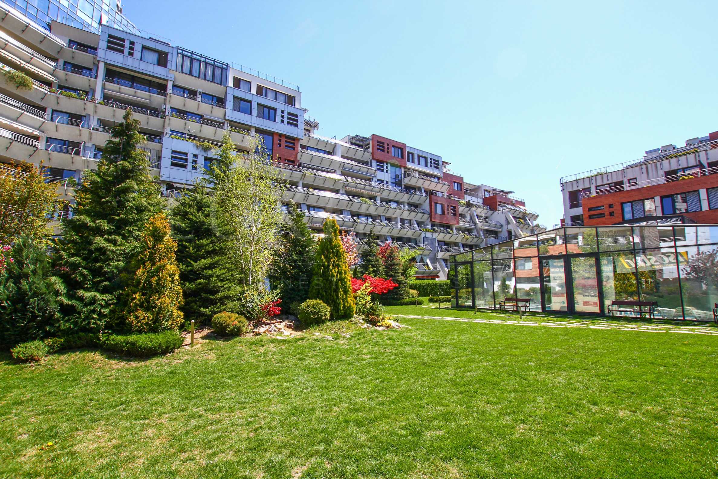 • вътрешен парк (3000 кв.м.), оформен като градина с озеленяване, алеи за разходка и кътове за отдих и забавления