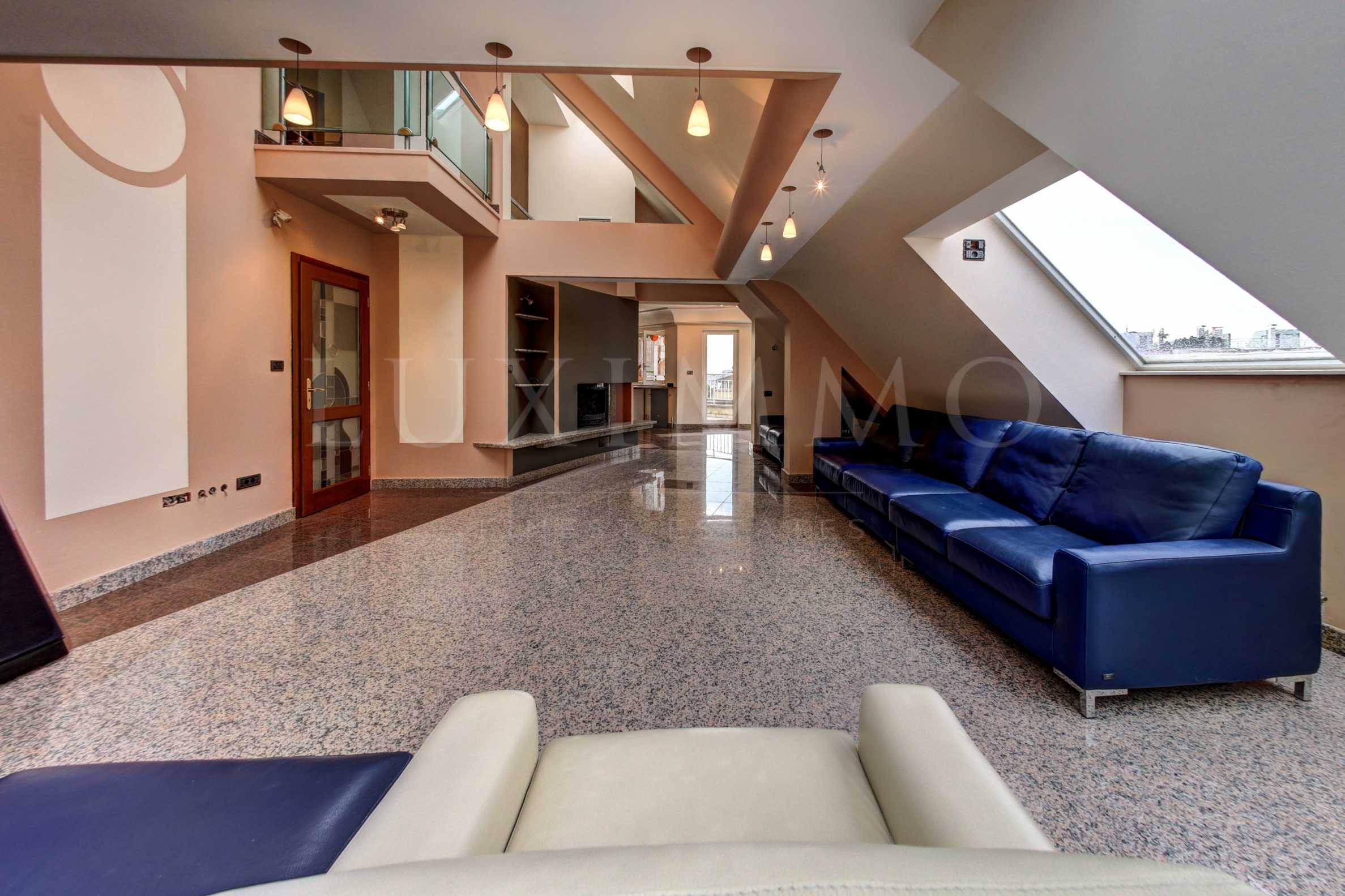 Разпределение: Дневна с кухненски бокс и трапезария (високи тавани над 7м.), 3 спални, 3 бани с тоалетни, отделна тоалетна, 5 балкона с вградена система за разтопяване на лед;