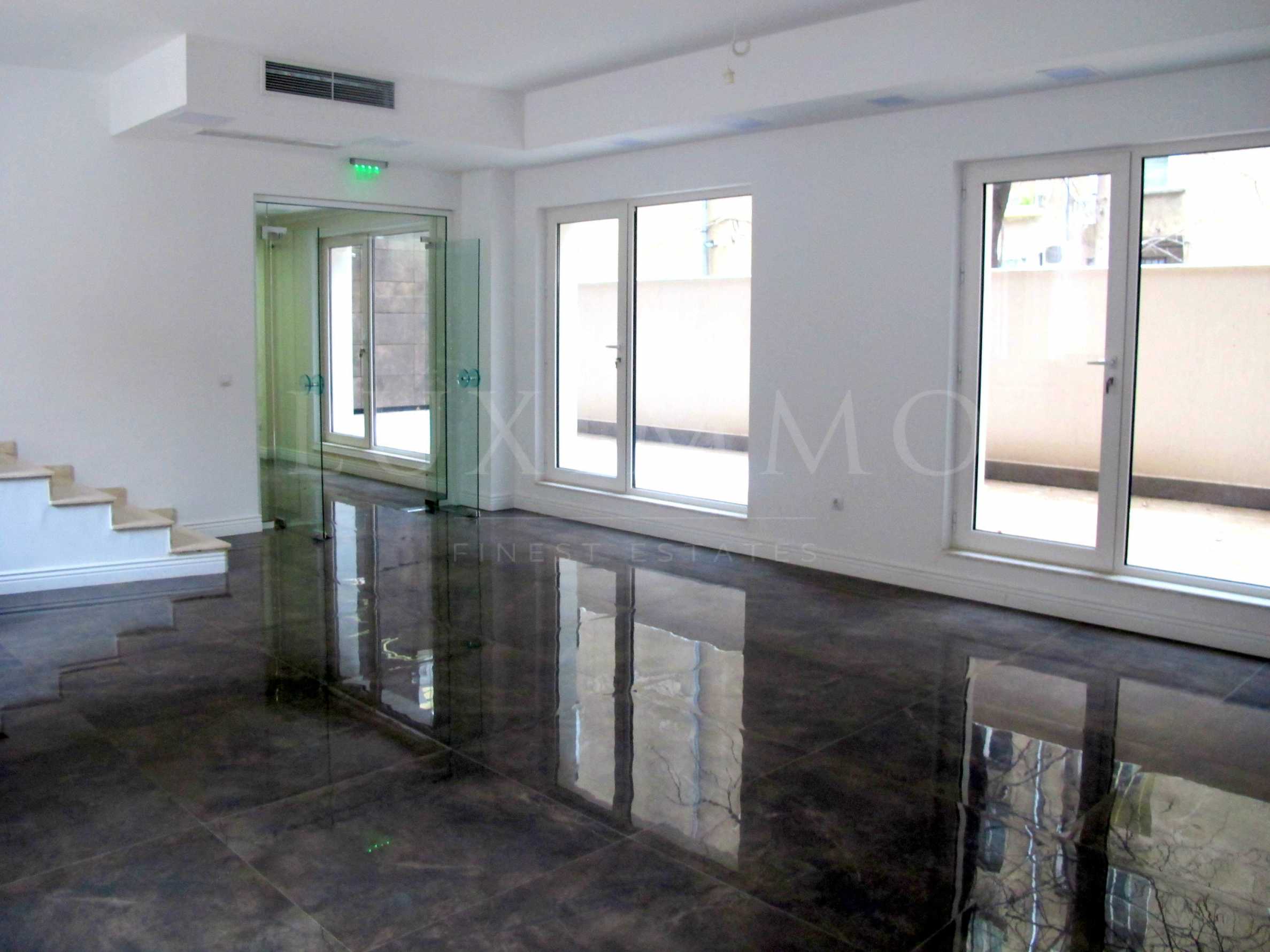 • едно просторно помещение с излаз на голяма тераса и няколко стъпала водят към второ отворено помещение с излаз на втора тераса