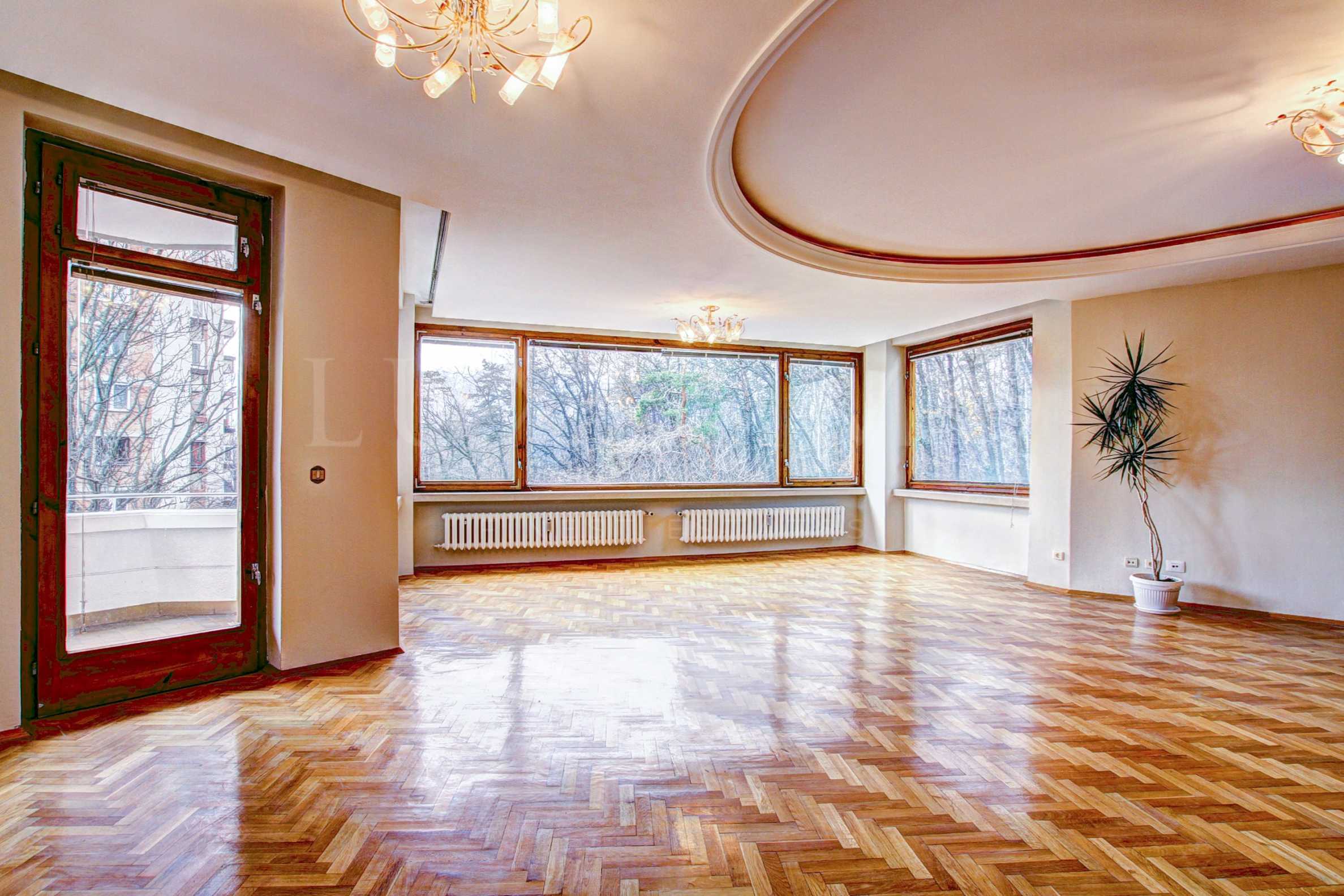 Жилището заема втори от общо пететажната сграда. Изложението е изток/запад/север/юг. От имота се разкрива възхитителна гледка към Витоша, парка, озеленен вътрешен двор и прилежащата улица. Апартаментът е в класически стил, притежаващ автентична интериорна среда.