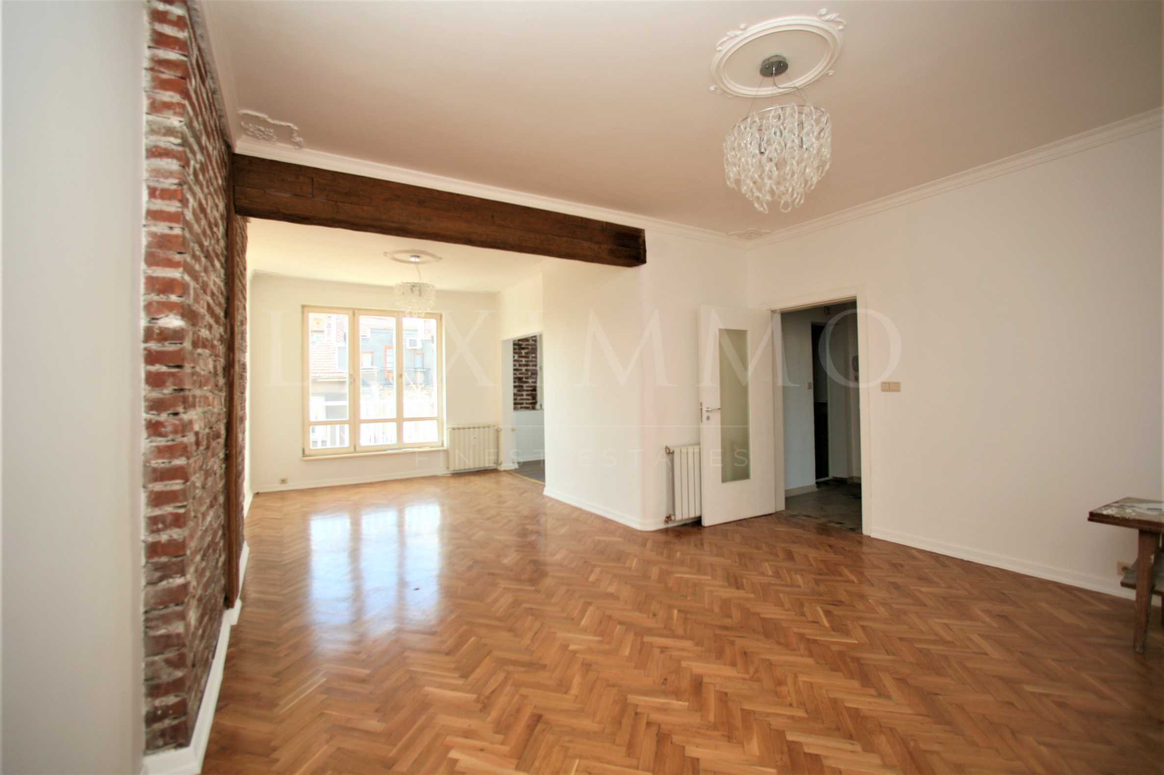 Предлагаме на вашето внимание функционален тристаен апартамент с ТОП локация, район Докторски паметник, на метри от ул. Оборище. С функционалното си разпределение апартаментът ще предложи помещения богати на светлина и уют, с височина на таваните 3 метра. Изцяло реновиран, имотът е с френски прозорци с дървен стъклопакет, естествен паркет, просторна всекидневна с обособена кухня, с приблизителна обща площ от 50 кв.м. , също така две просорни спални (20 кв.м), две напълно оборудвани бани с тоалетна, килер и една тераса с гледка към вътрешен двор. Апартаментът е разположен на 3ти етаж от 4 жилищни етажа, в санирана сграда старо строителство. Сградата е с изцяло подновена ел. инсталация, подменени ВиК щранговете и с три сервизни помещения. В цената на жилище се включват още две мазета (5 кв.м и 6 кв.м), таванско помещение (7 кв.м) и външно паркомясто в двора на сградата.