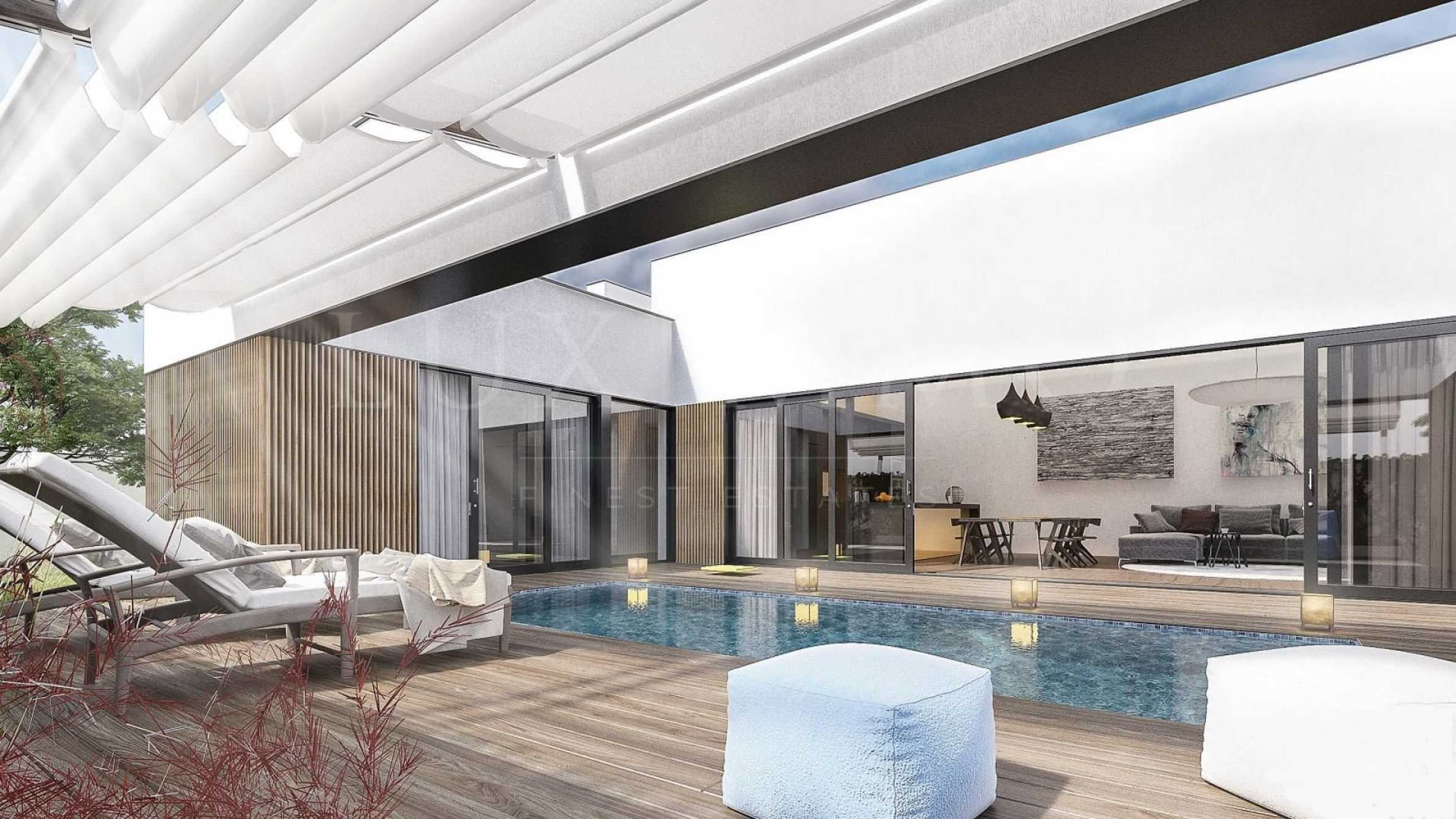 - Съвременна архитектура и градина с ландшафтен дизайн;