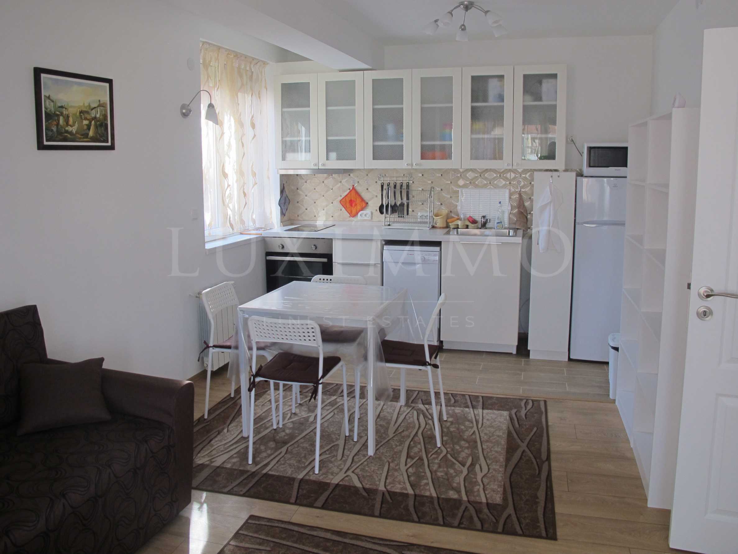 • оборудван кухненски бокс: фурна, котлони, абсорбатор, миялна, хладилник, телевизор, бойлер