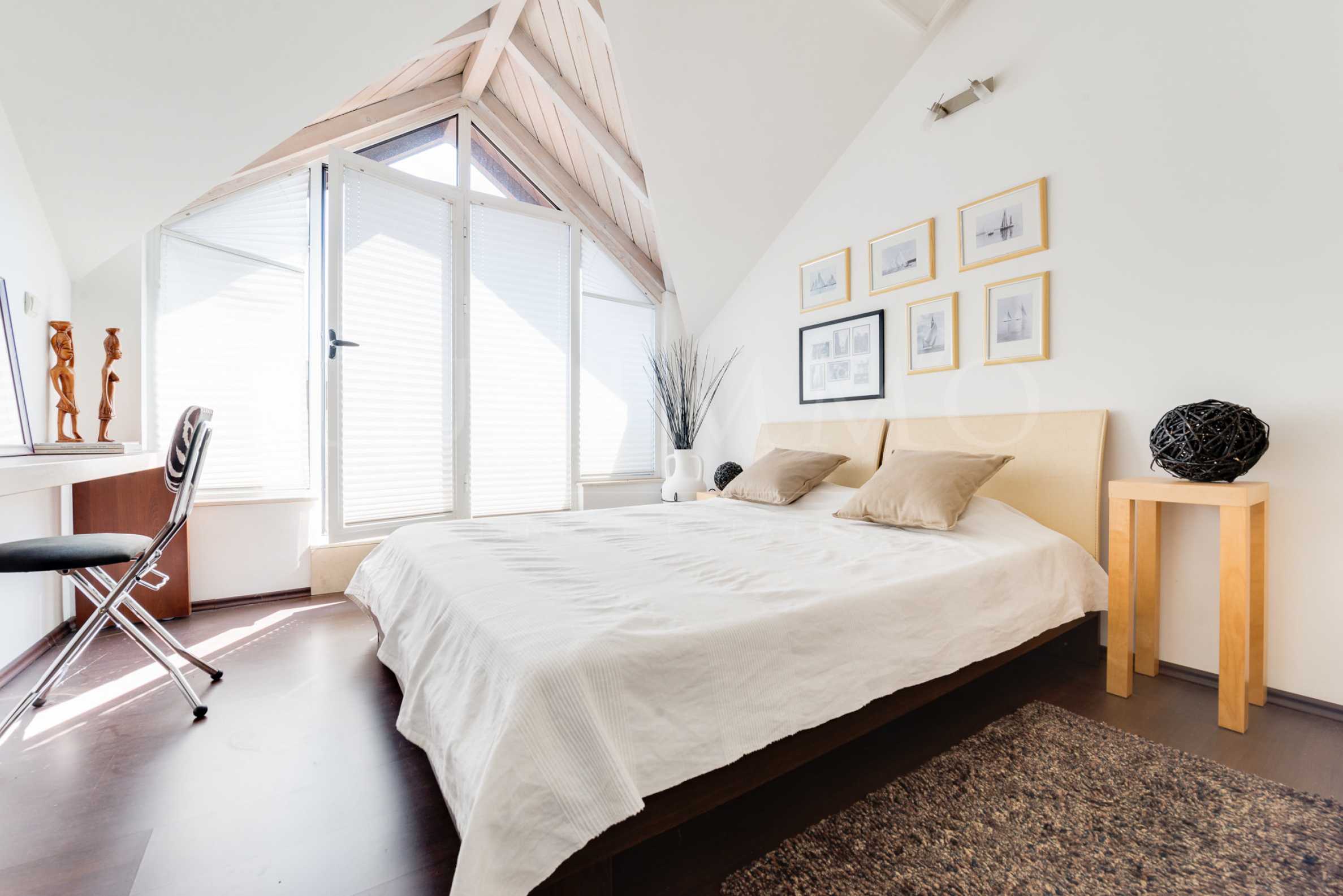 - Жилището е разположено на две нива и се състои от фоайе, хол-трапезария, кухня, три спални, две бани, склад, голяма тераса;