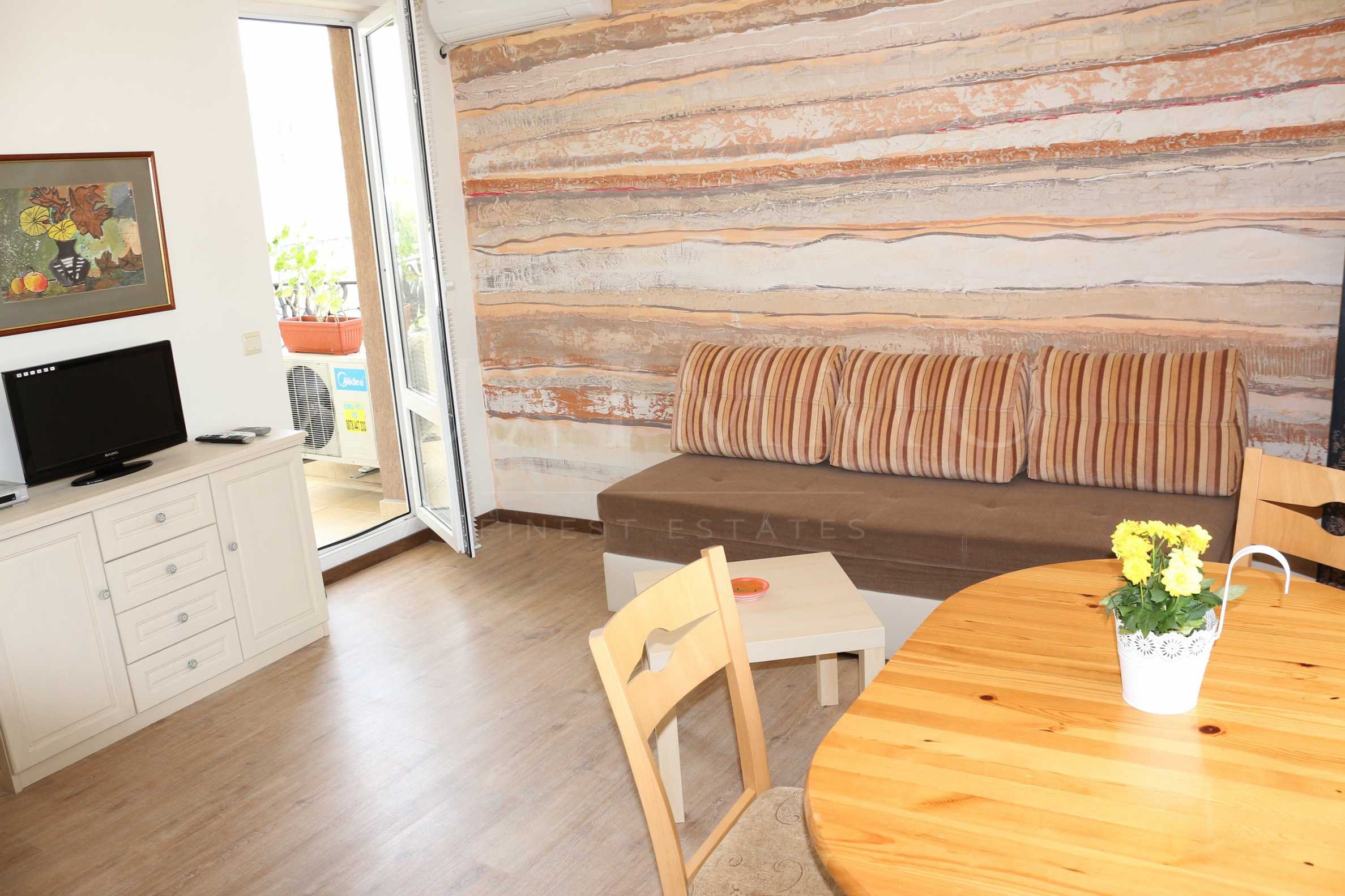 - Стилно обзаведен апартамент с уютна спалня и голяма всекидневна с оборудвана кухня;