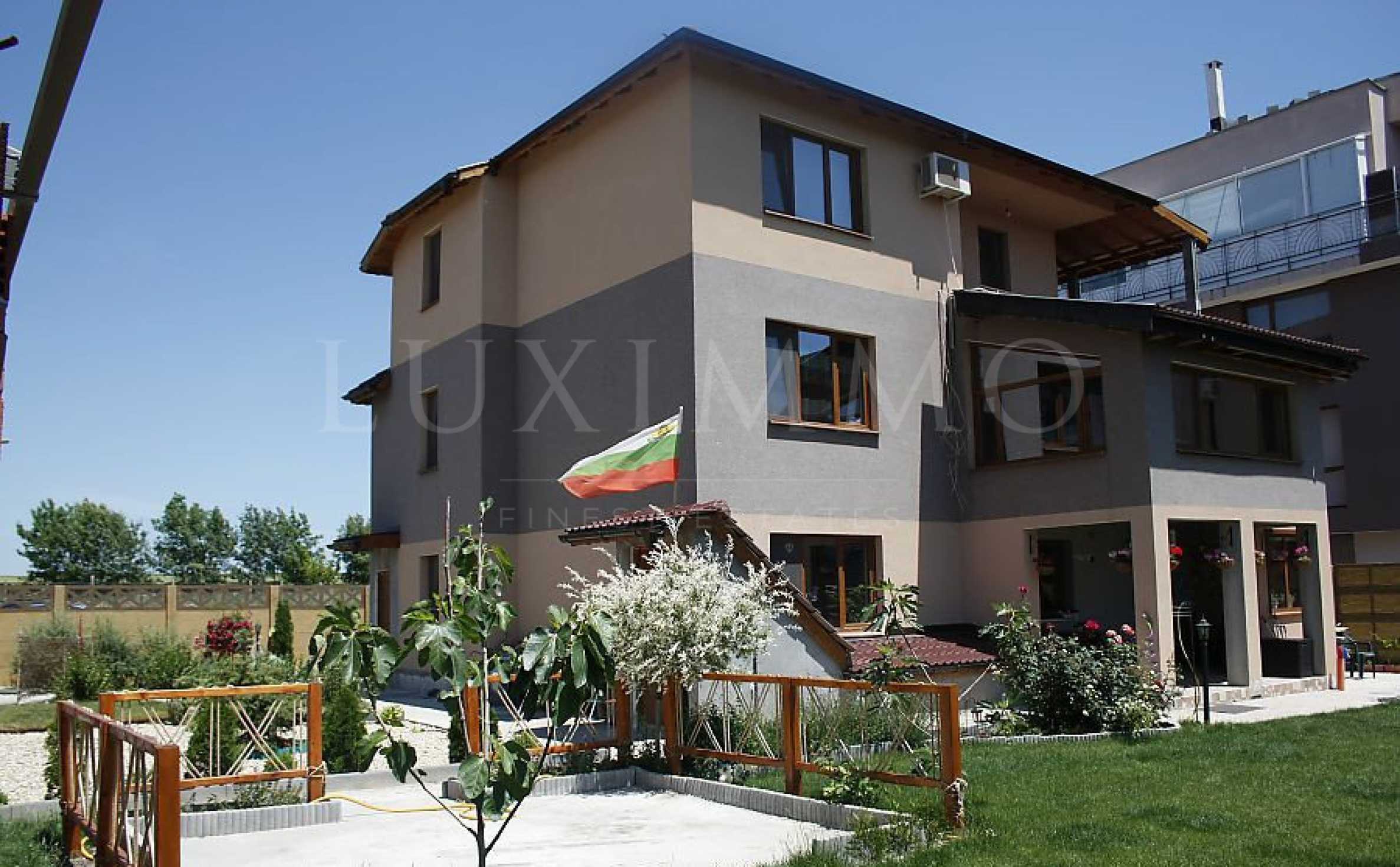 Нова къща с красива градина в елитния район на Сарафово
