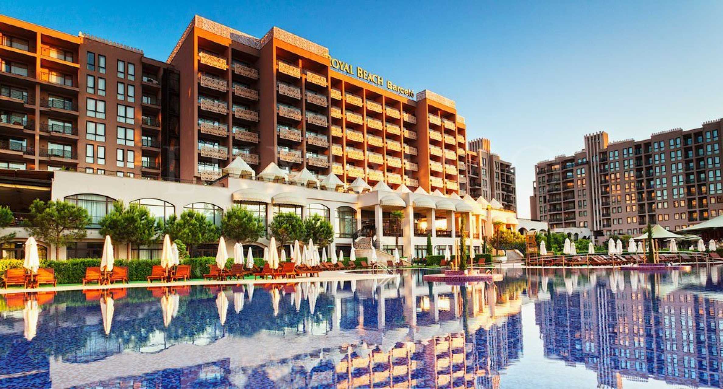 Предлагаме Ви стилно обзаведен ваканционен имот с уютна спалня в петзвездния крайбрежен комплекс на втора линия море в центъра на Слънчев бряг.