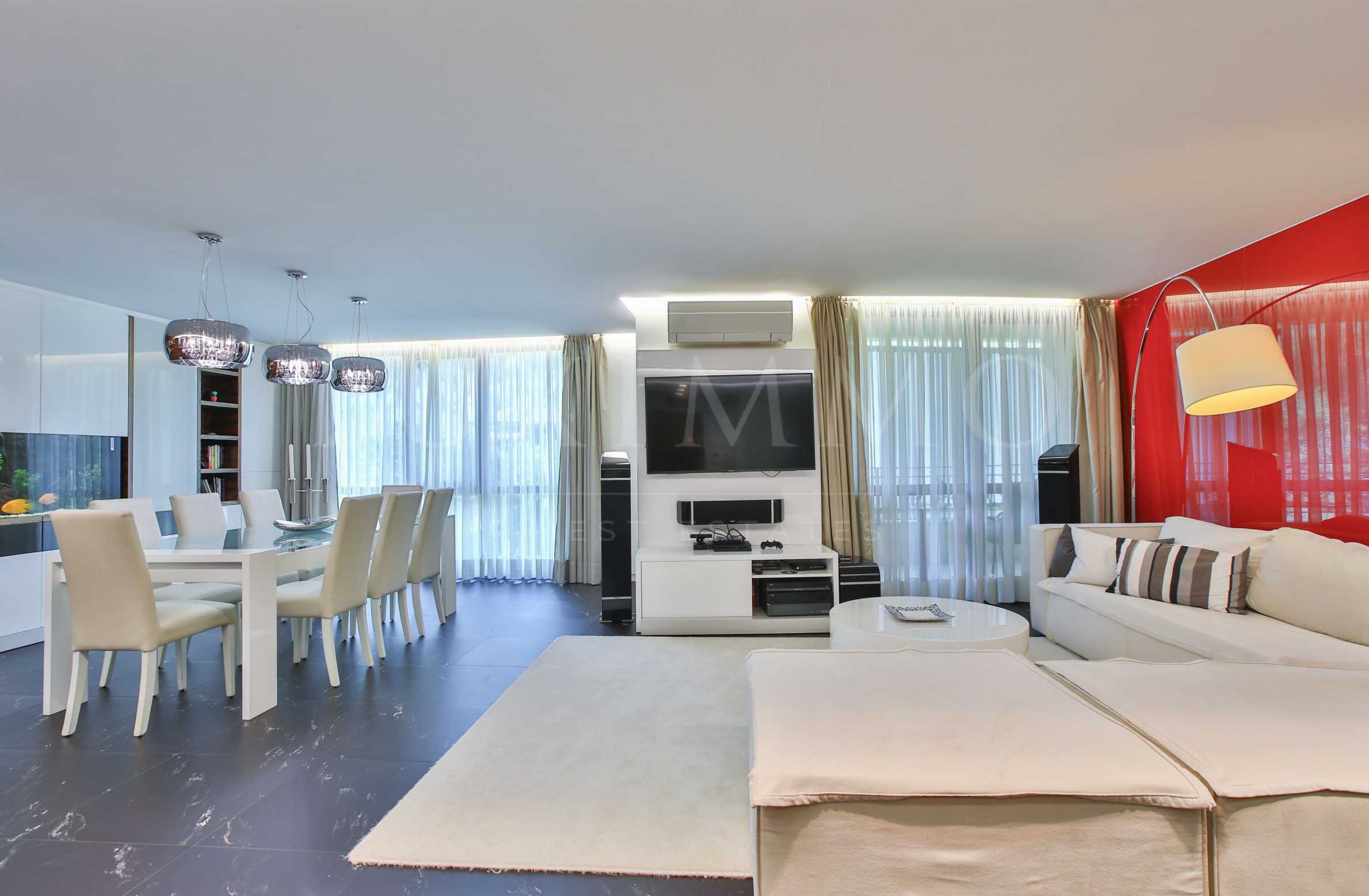 - Интериор по дизайнерски проект, решен в светли цветове;