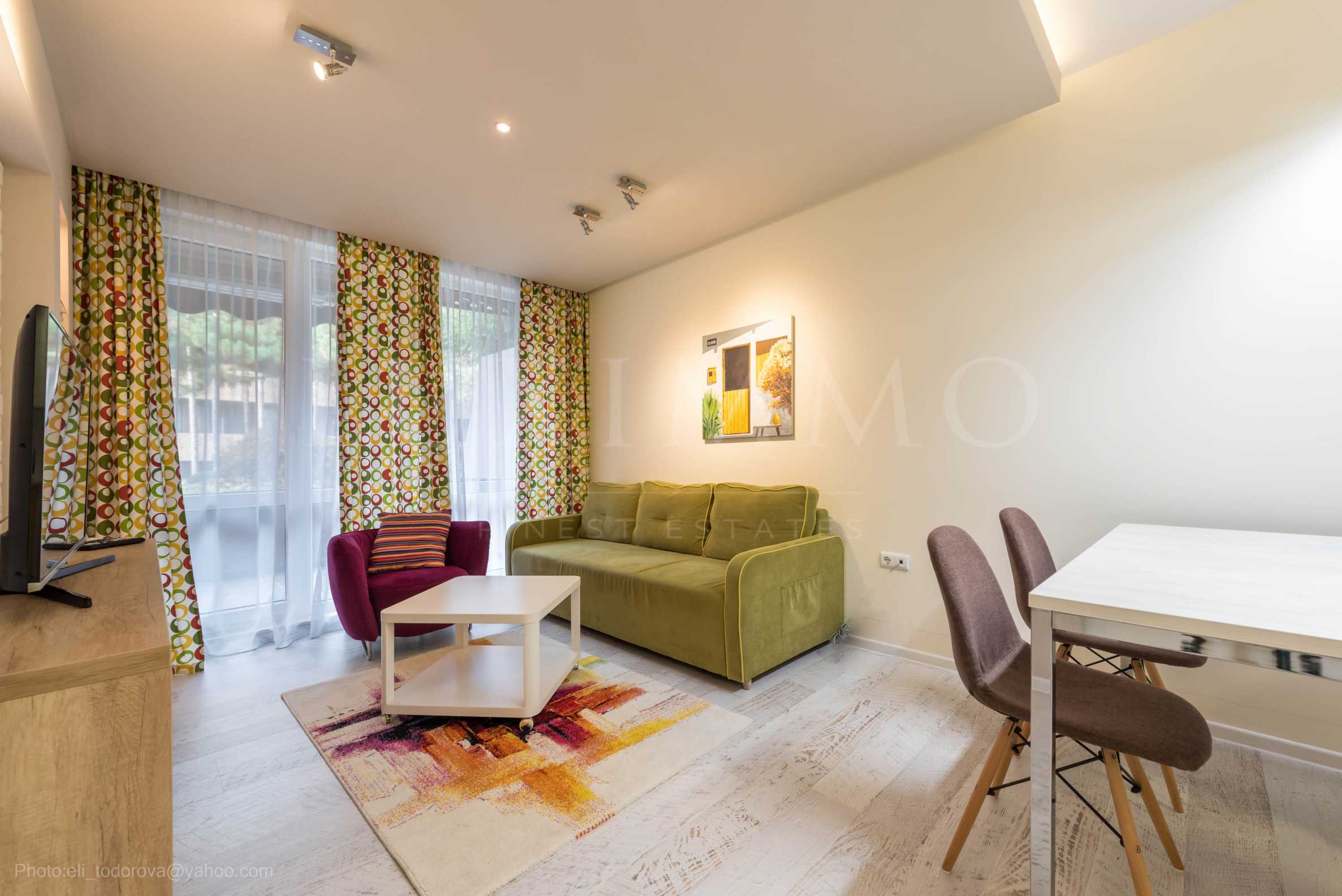 Апартаментът е обзаведен с модерен интериор, климатизиран, оборудван с висок клас електроуреди.