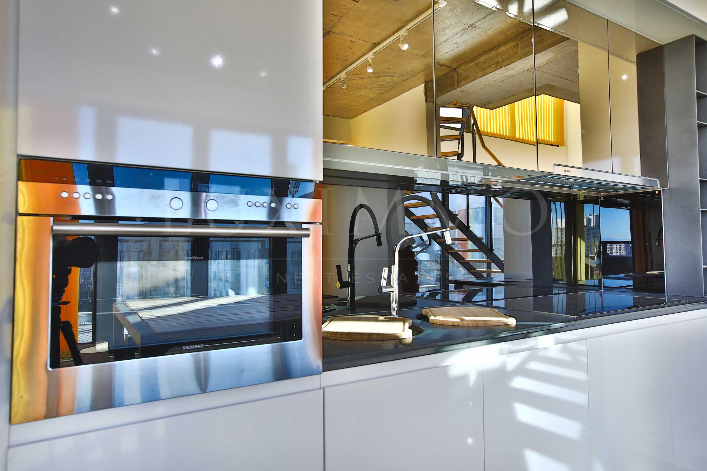 Арт, ярък, стилен, уникален са само някои от нещата, които могат да се кажат за впечатляващия апартамент- тип "лофт". Жилището заема осми и девети от общо девететажна жилищна сграда. Изложението на апартамента е юг/запад/север/изток, с откриващи се красиви панорамни гледки към планината и много зеленина в "Национална спортна академия".