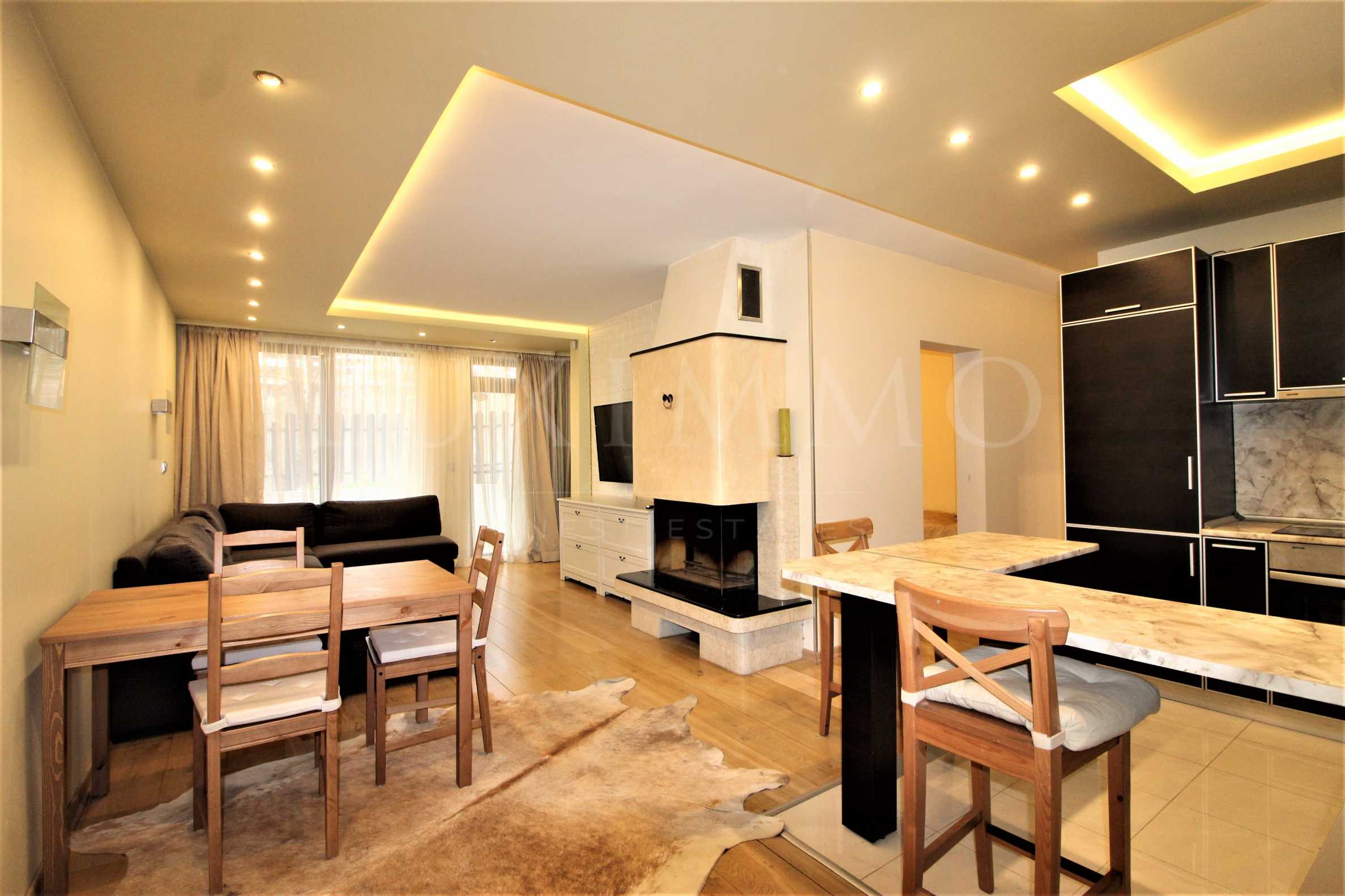 Завесите във всички стаи са от висококачествен текстил. Подовете са покрити с дървен паркет. Стените са боядисани с висококачествена боя Бенджамин Мур.