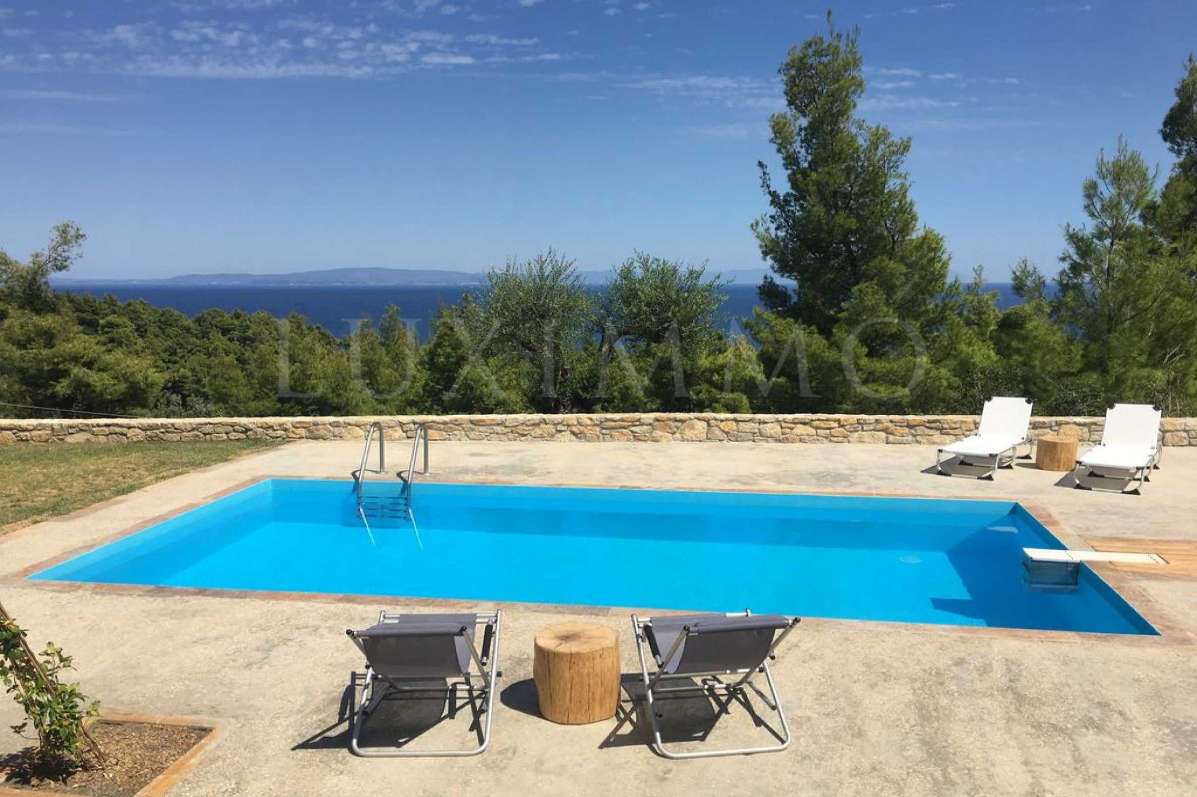Предлагаме на вашето внимание вилa с площ 200 кв.м. Година на строителство: 2018. Отоплението се осъществява посредством камина и локално парно. Има климатизация. Имотът се предлага със следната степен на завършеност: алуминиева дограма. Имотът е снабден с септична яма. Важно е да се отбележи, че имотът разполага с: балкон, баня с тоалетна, килер, паркинг и басейн. От имота се разкрива гледка към морето.