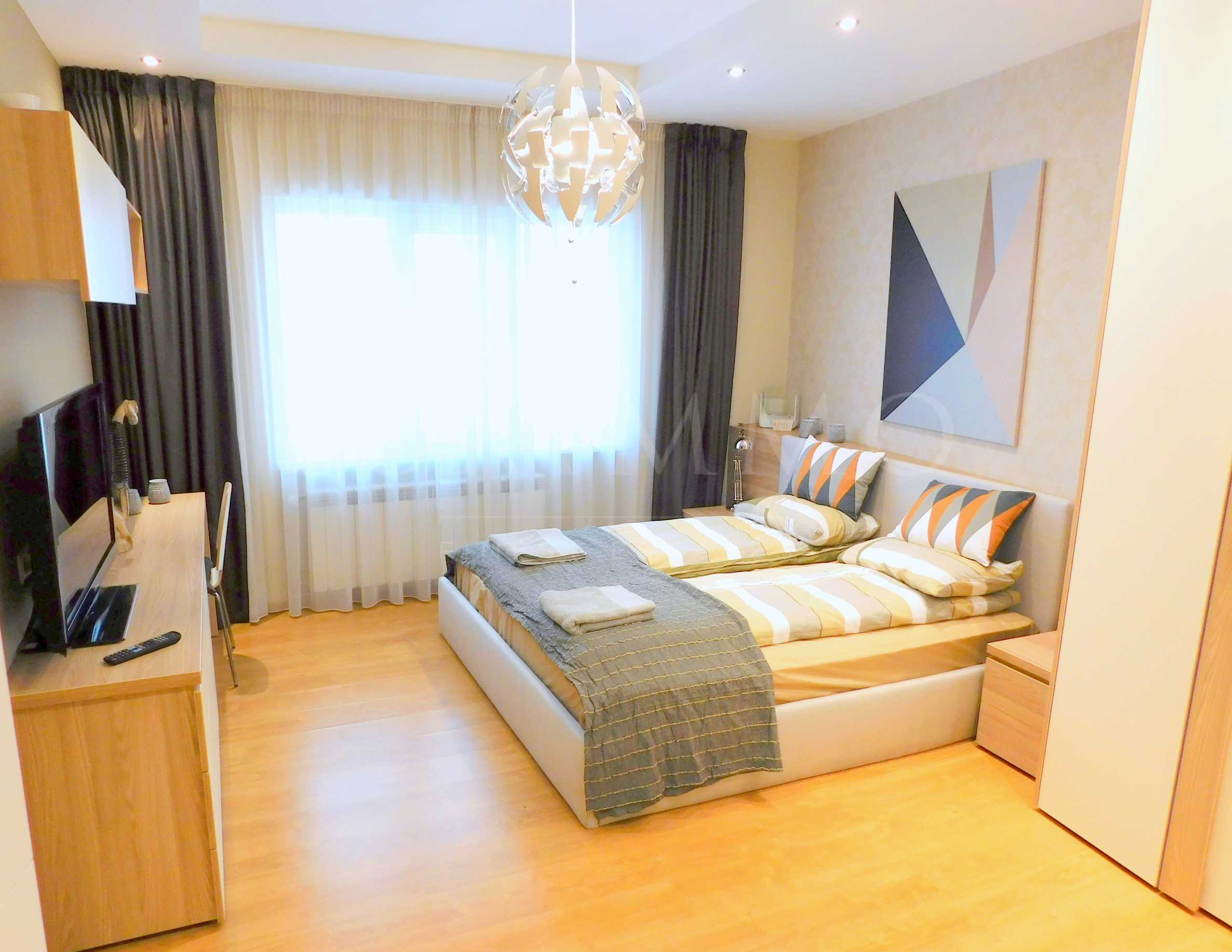 • Спалня: двойно легло с матрак, гардероб, скрин, тоалетка, нощни шкафчета, нощни лампи, телевизор 50“;