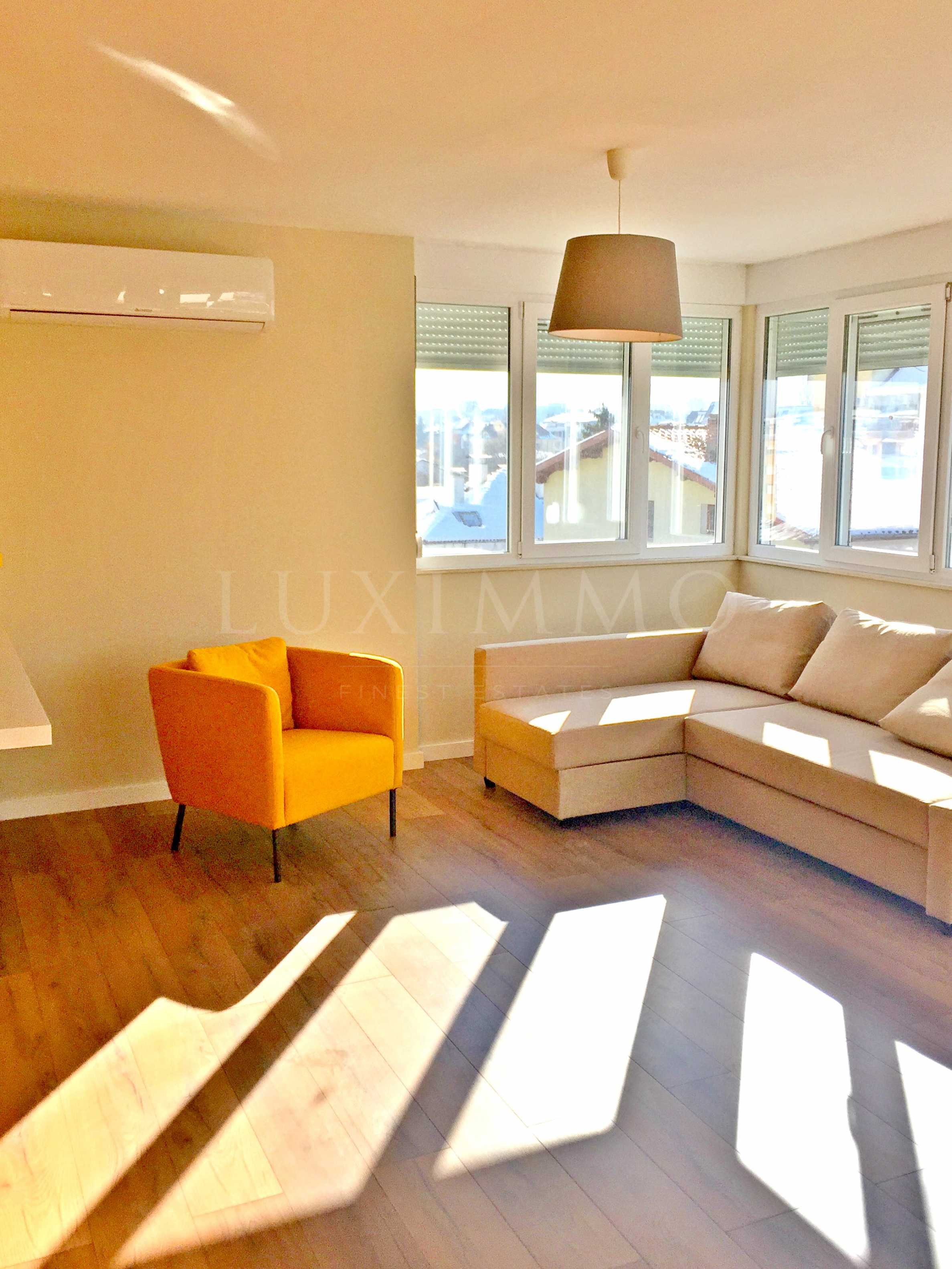Апартаментът е луксозно довършен и обзаведен с всичко включително ролетни щори, климатик, СОТ. Готов е за нанасяне веднага. Има възможност да се закупи подземно паркомясто на цена от 6900 евро.