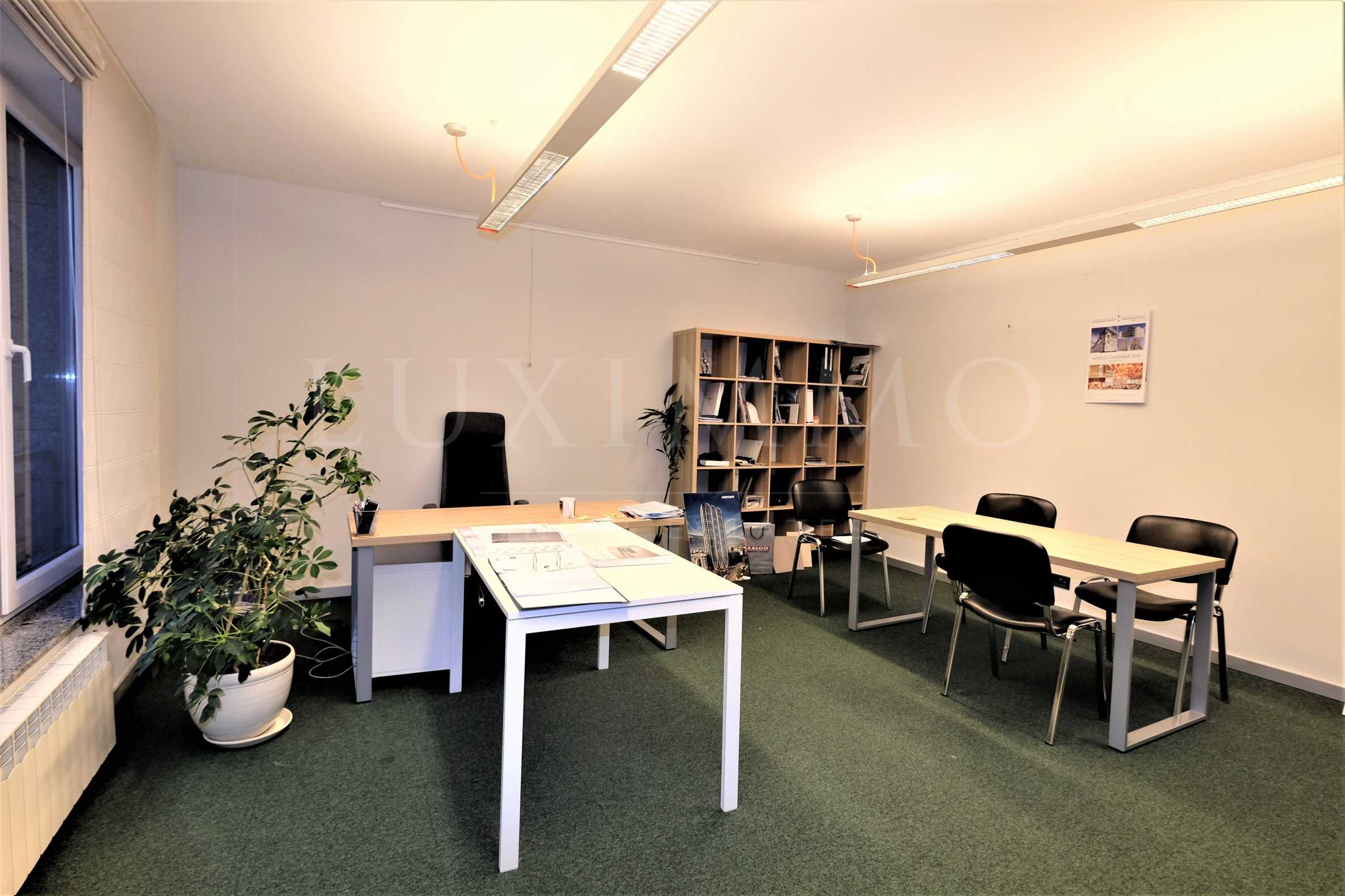 Състои се от три работни помещения с прилежащ кухненски бокс, архив/сървърно помещение и общ санитарен възел с две самостоятелни клетки.
