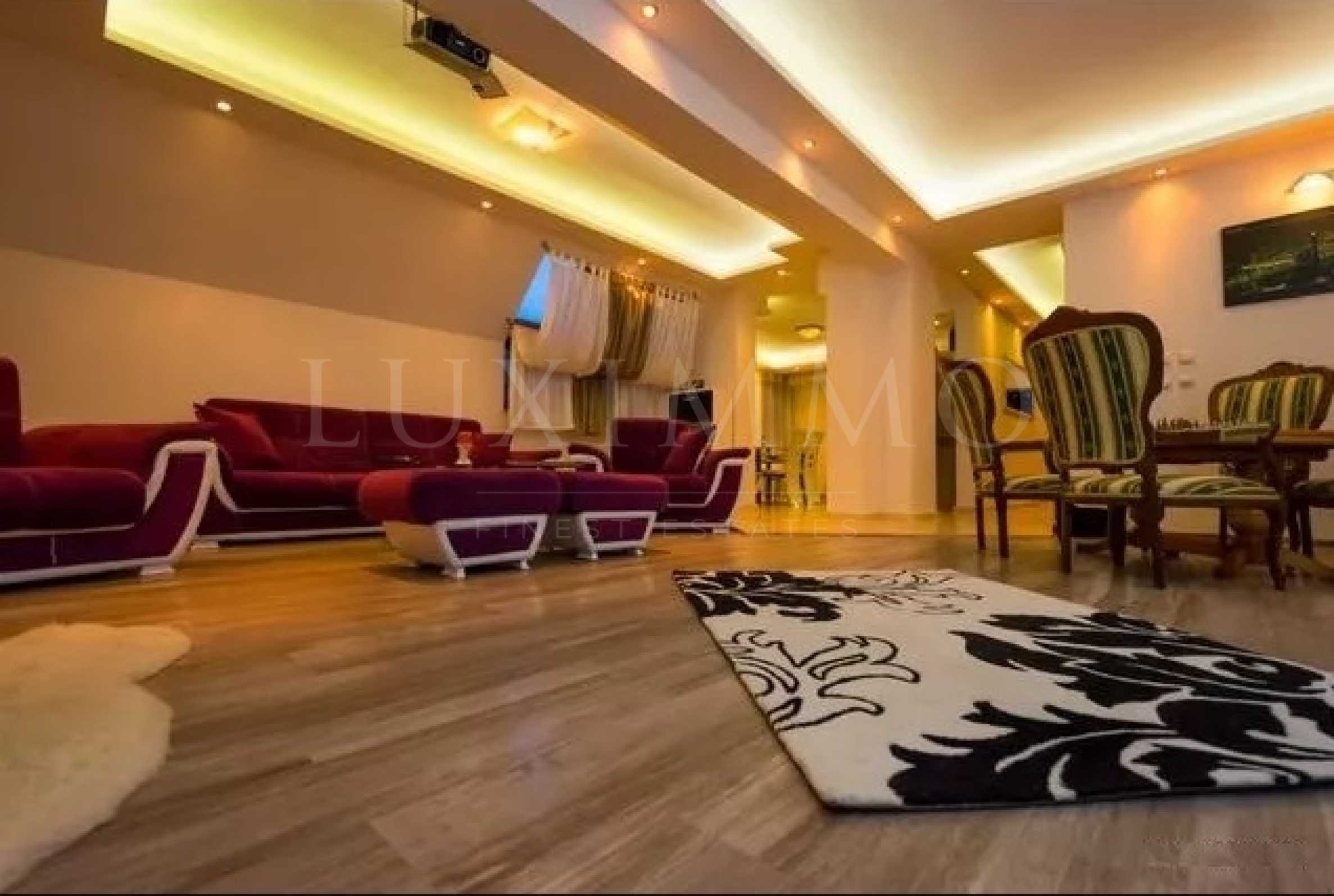 Подробности: централна топла вода осигурена от голям бойлер, скрито ЛЕД осветление с димери и лунички с дистанционно управление, четири климатика, видеостена-проектор 2м х 2м, изводи за камина с централно парно-водна риза;