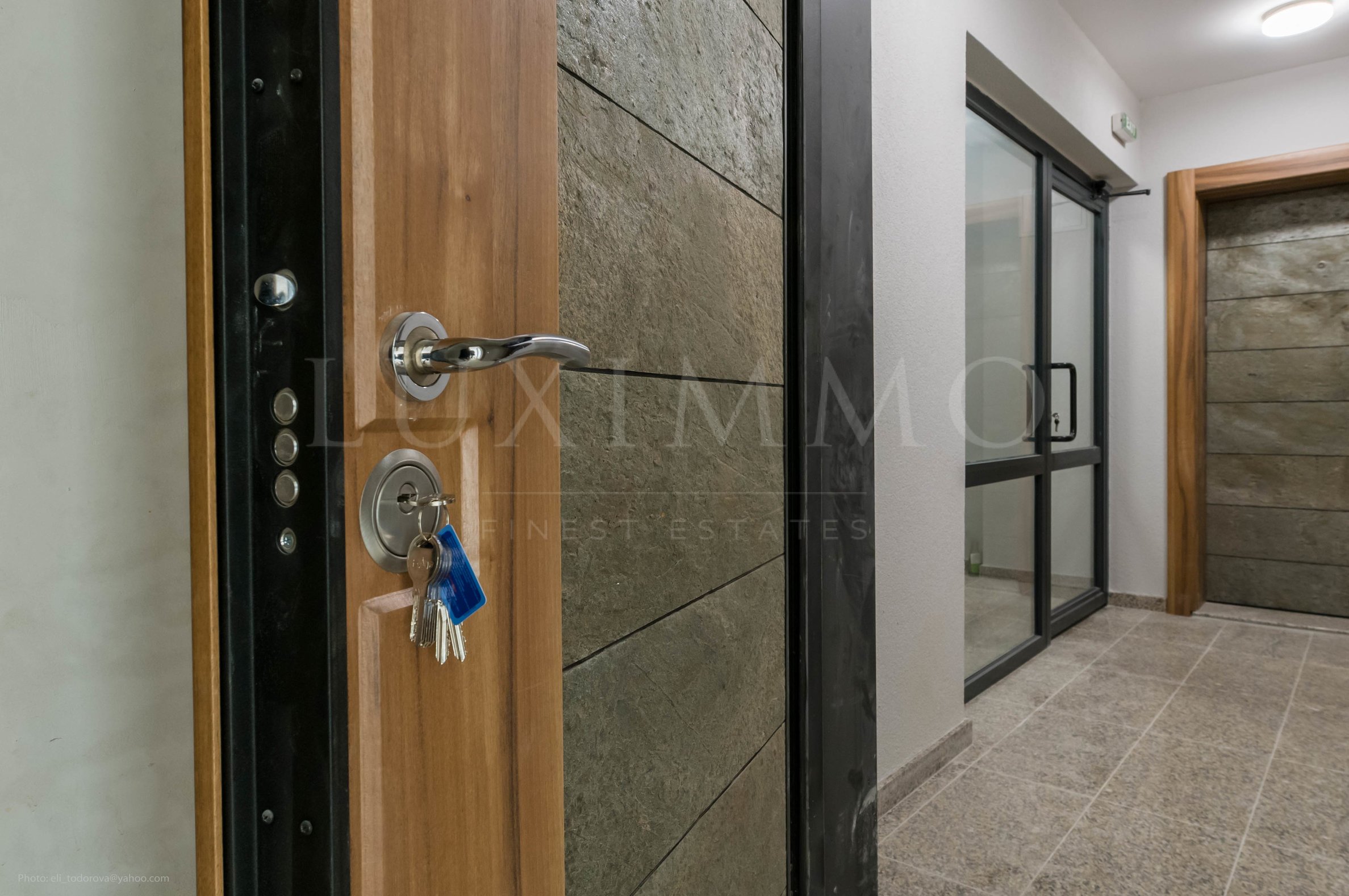 Апартаментите се предлагат с поставена шест-камерна PVC дограма цвят антрацит, външните блиндирани врати ще ви създадат усещане за сигурност и престиж.