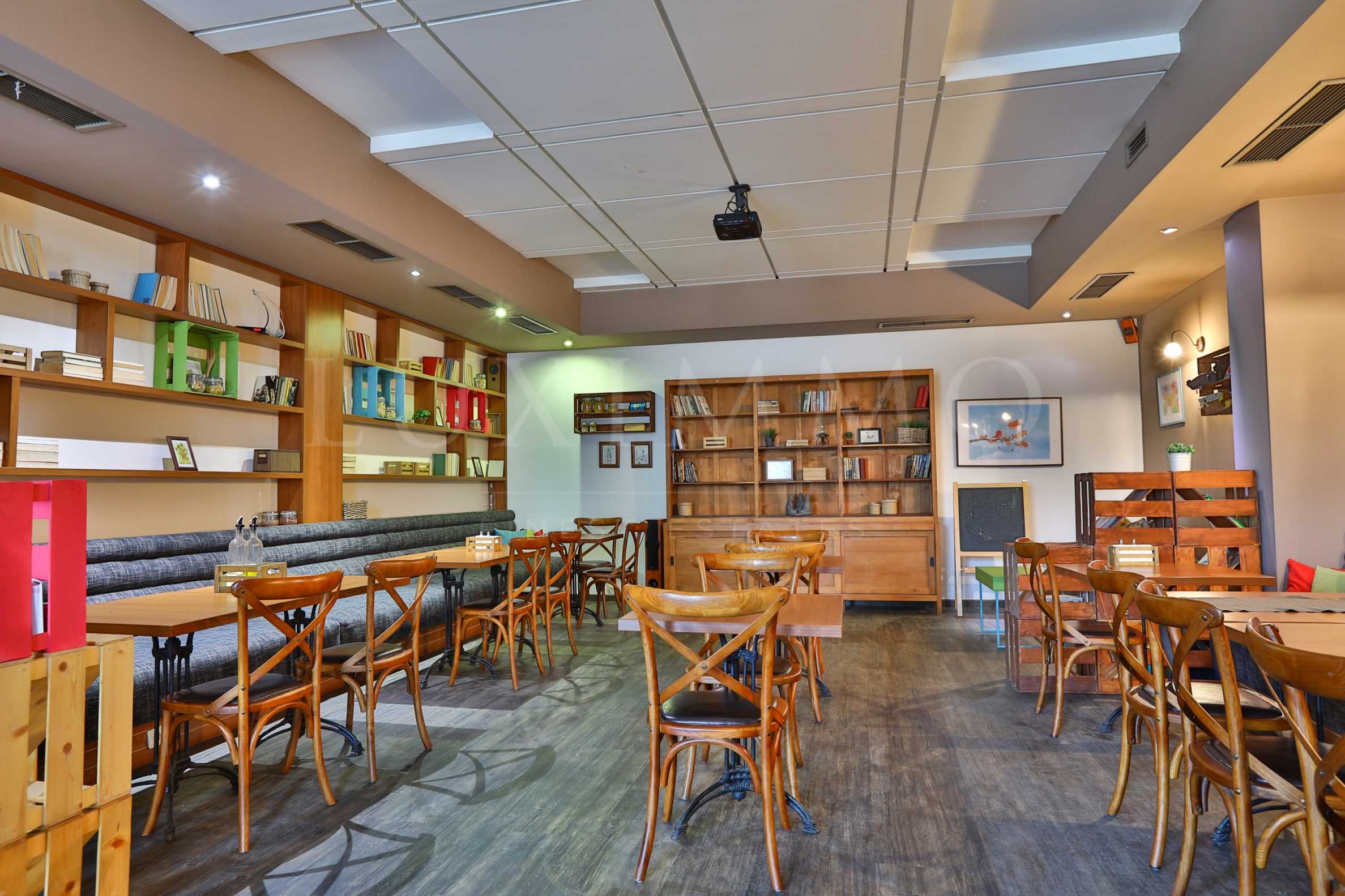 Имотът заема партерен етаж, с излаз на голяма тераса. Изложението е изток/север. Отоплението е посредством индивидуално изградена централна климатизация , даваща максимална оптимизация на разходите за отопление. Заведението разполага и с нова вентилационна система.