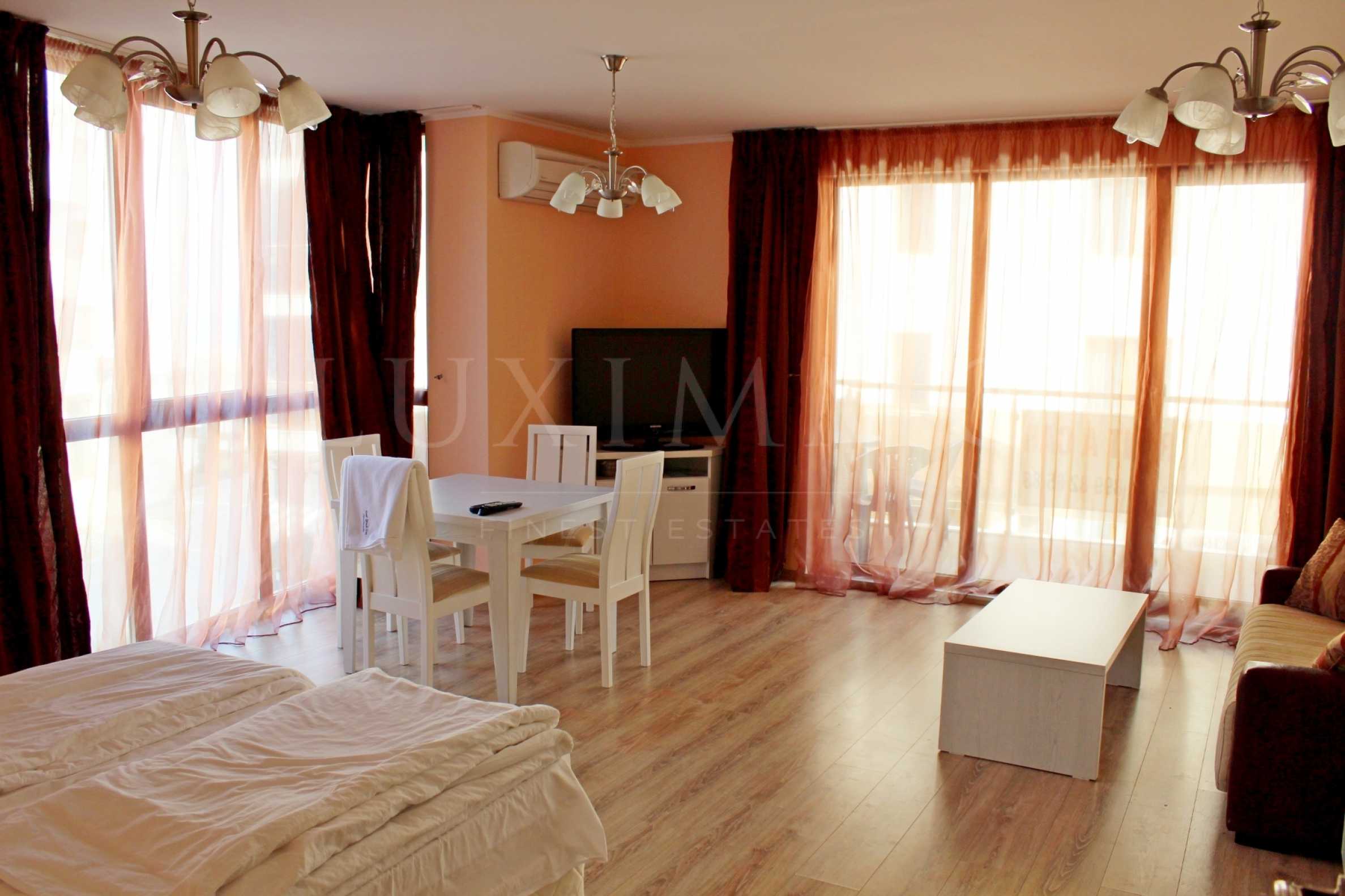 Апартаментът се намира в небезизвестния комплекс „Лонг Бийч Ризорт“ само на метри от плажа. На разположение са редица удобства като: външен и вътрешен басейн с минерална вода, плажната зона до комплекса е оборудвана с чадъри и шезлонги, безплатен WiFi в рамките на комплекса и в района на плажа, СПА център с акватоничен басейн с топла минерална вода, зали за аеро- и хидромасаж, хидромасажна вана, финландска сауна, парна баня, турска баня, руска баня и солна стая с тухли от хималайска сол.