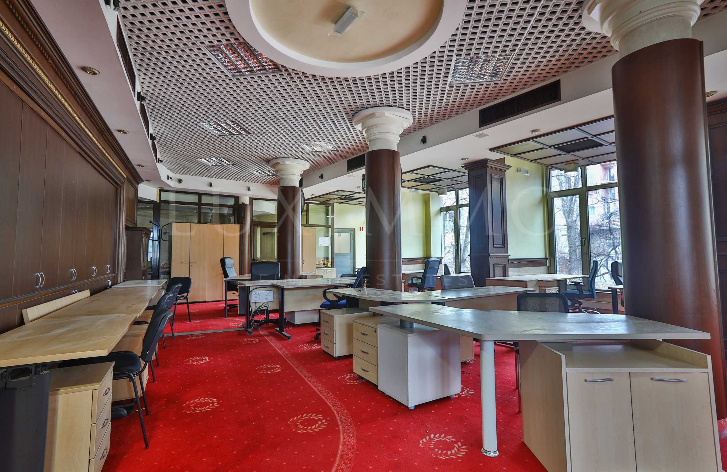 Помещението се предлага необзаведено, изпълнено е с висококачествени довършителни работи: стени – латекс, под – мокет. С обща площ от 465 кв.м, състоящо се от: