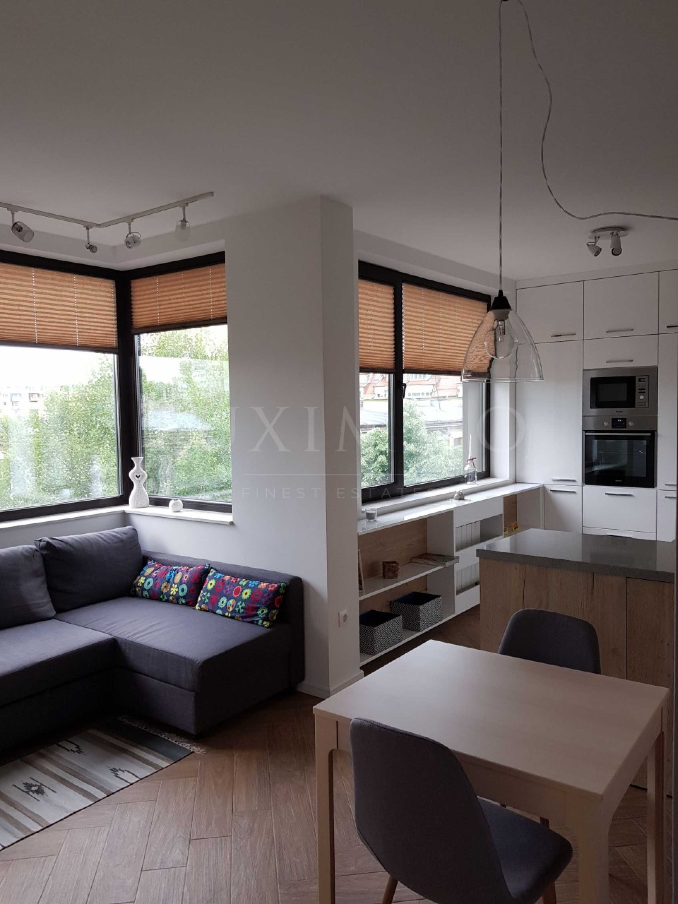Нов луксозно обзаведен апартамент намиращ се в красива нова тухлена сграда. Състои се от входно антре, дневна с трапезария и кухненски бокс, спалня, баня с тоалетна, тераса. Жилището е обзаведено с изцяло нови мебели, и всички уреди необходими на едно домакинство. Отоплява се на ТЕЦ има и климатик. Сградата е нова с луксозни общи части и контролиран достъп. Имотът е в близост до МОЛ България и спирки на градския транспорт. В района има училища и детски градини и паркове.