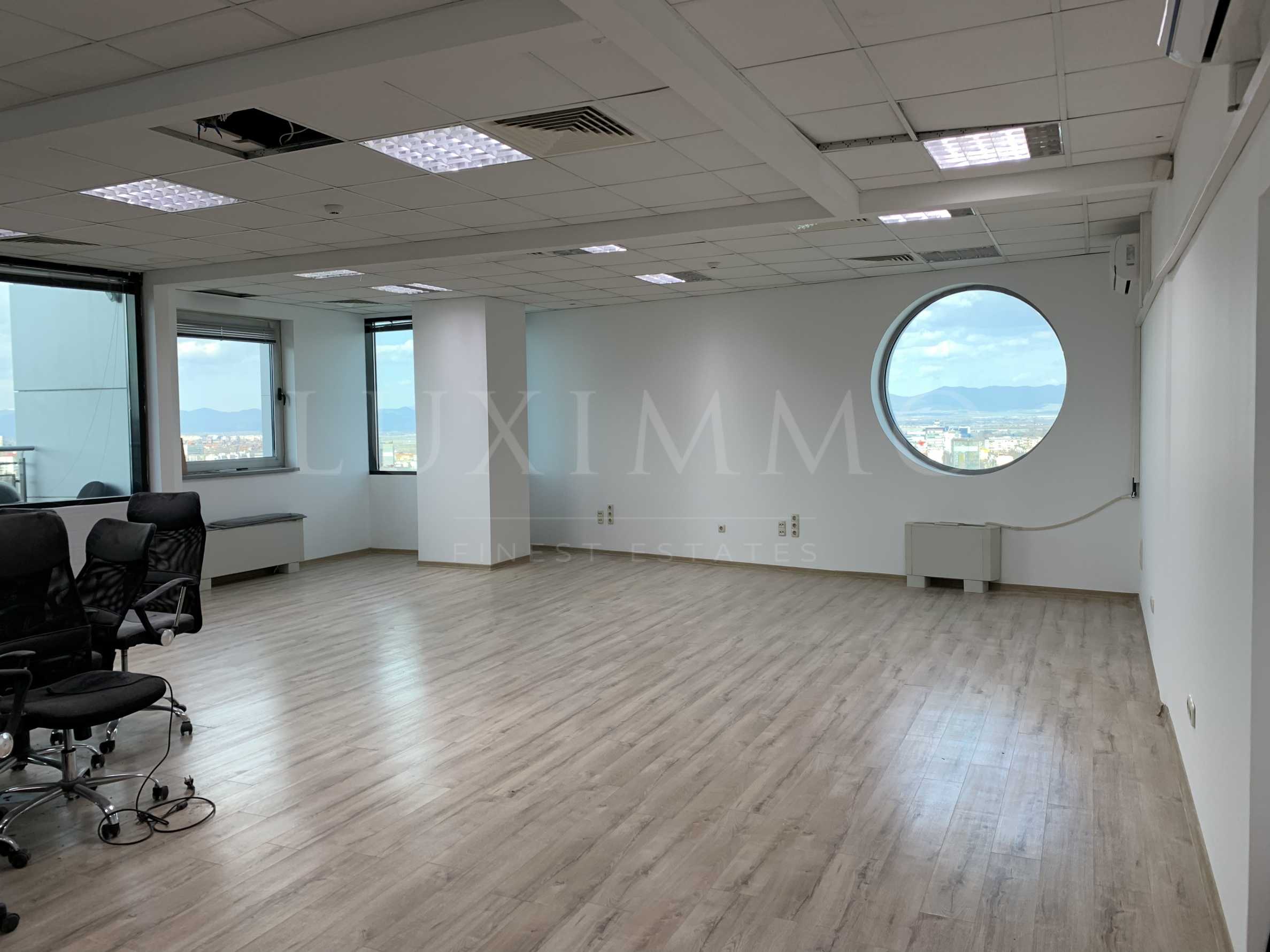 Представяме на вашето внимание светъл и просторен офис, заемащ цял етаж от бизнес сграда в близост до The Mall. Офисът отговаря на категория клас „А” и предоставя модерна работна атмосфера. От имота се разкриват невероятни 360-градусови панорамни гледки;