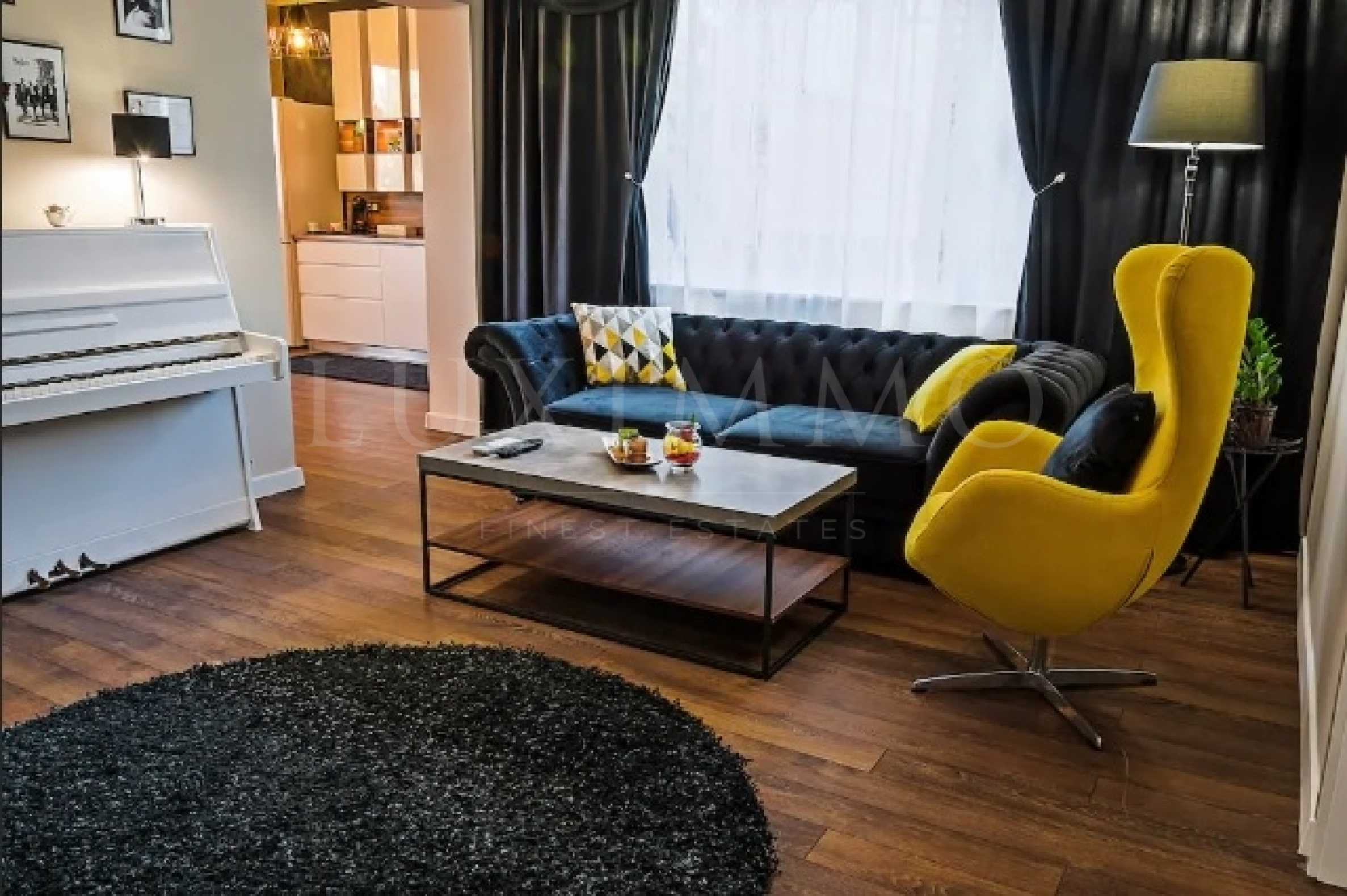 Апартаментът е с две самостоятелни спални, всекидневна и кухня с трапезария. Можете да се възползвате от сателитни канали на голям ТV екран, наличен е и безплатен непрекъснат WiFi. Обновеното оригинално пиано е перфектният завършек към интериора. Кухнята и трапезарията са решени в красиви цветове и отговорят на очакванията на най-претенциозните.