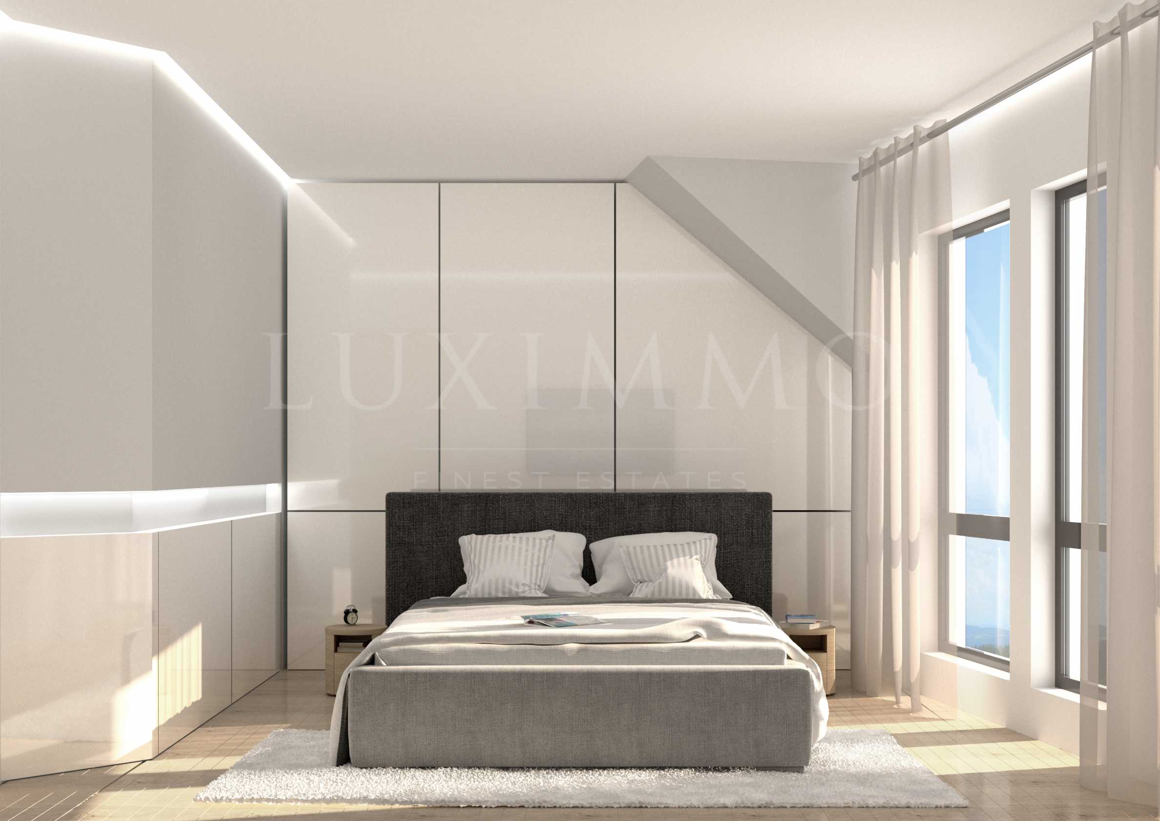 - Имотът се предлага напълно завършен с естествени материали, помещенията са светли и панорамни.