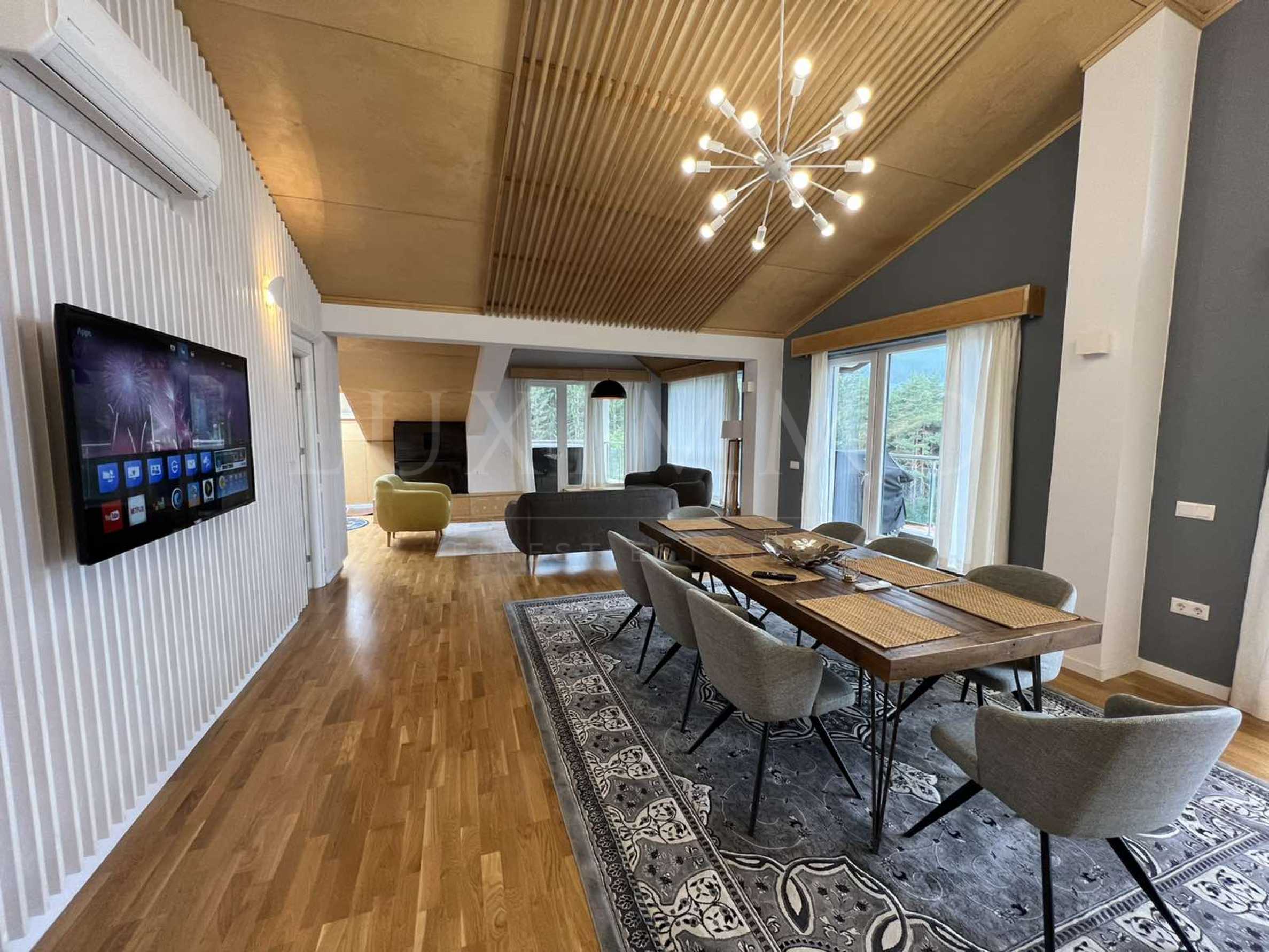 - Просторен хол с камина на дърва, 4 спални, 4 балкона, сауна и джакузи;