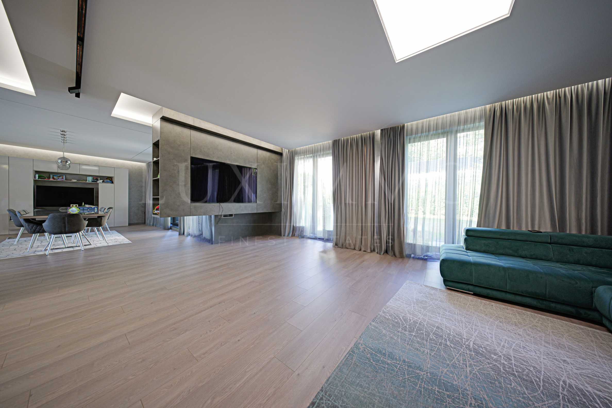 - Приземен етаж – просторна дневна, голяма кухня с гледка към София и излаз към озеленения двор с панорамна гледка към Витоша;