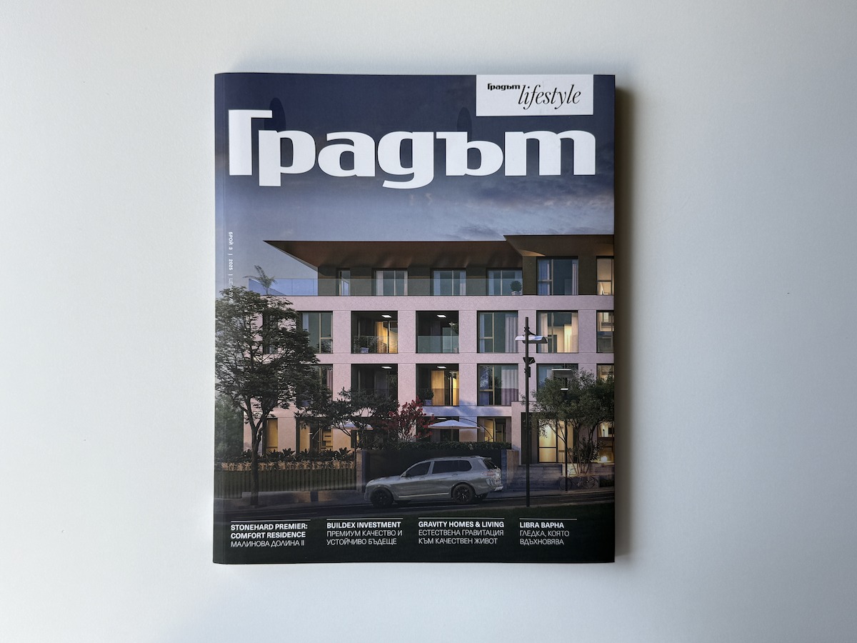 Новият жилищен проект на TASKOV & STOYANOV от серията COMFORT RESIDENCE е представен в престижното списание „ГРАДЪТ“, където заема и корицата на брой 3, 2025 г. Това е силно признание за качеството на проекта на TASKOV & STOYANOV и архитектурно студио STUDIO CREATIVE. Изданието подчертава модерната визия, отличната локация и високия стандарт на строителство, с които новият комплекс "СОМFОRТ RЕЅІDЕNСЕ Maлинoвa дoлинa 2" се отличава на имотния пазар в София.