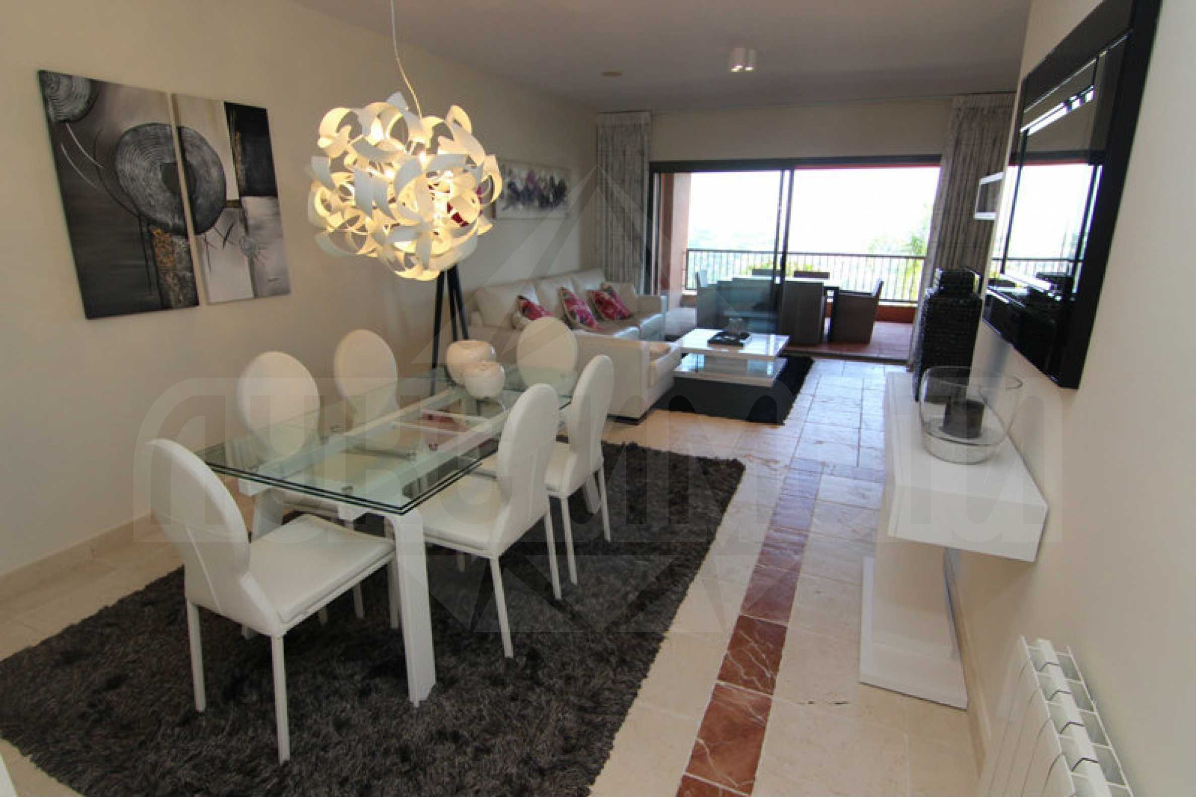 Имаме удоволствието да представим на Вашето внимание луксозен 2-стаен, напълно и стилно обзаведен и декориран, апартамент, с отлично местоположение в голф комплекс Los Flamingos (3 голф игрища) и 5* Хотел "Villa Padierna". Допълнително предимство е близостта до удобства, на няколко минути от плажа, до места за пазаруване и пристанище Puerto Banús в Nueva Andalucía, на югозапад от Марбея.