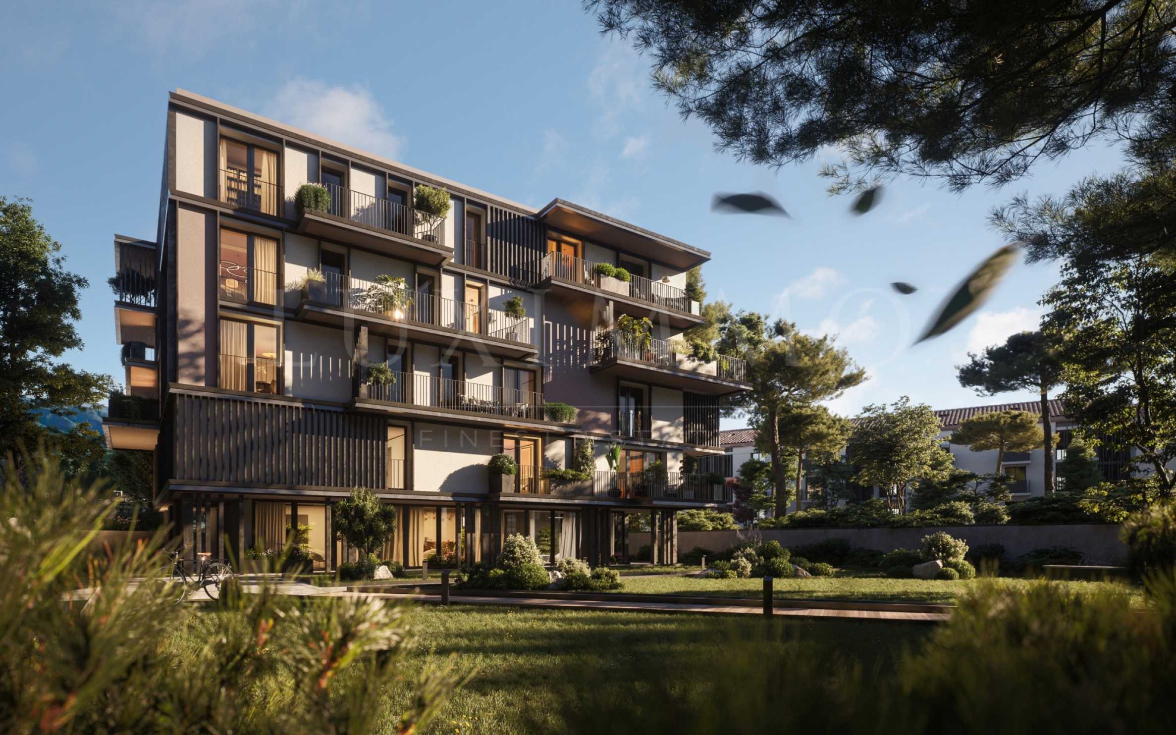 Предлаганите жилища са напълно обзаведени апартаменти с 1, 2 и 3 спални, като съчетават функционалност и красота, създавайки изключително удобни за живеене пространства. Интериорният дизайн се характеризира с елегантни дървени материали, мека цветова палитра и френски прозорци, които осигуряват достатъчно естествена светлина и панорамна гледка към заобикалящата красота. Всеки елемент е внимателно подбран, за да предизвика усещане за лекота, баланс и хармония, обгръщайки пространствата с топлина и комфорт.