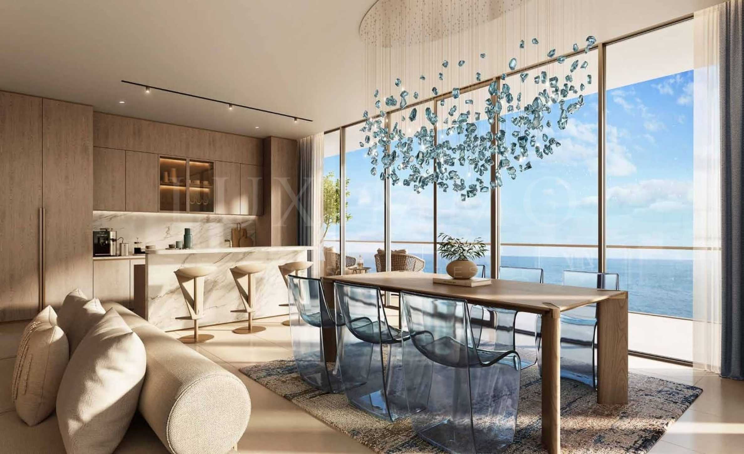 Проектът включва апартаменти с 1 до 3 спални, съчетаващи уникален интериорен дизайн и висококачествени облицовки. Дизайнът дава приоритет на простора и свободата, като големите прозорци осигуряват невероятна гледка към Арабския залив, допълвайки отворените пространства. Интериорът включва първокласни материали, елегантни линии и привлекателни топли тонове, гарантирайки, че всяка зона е едновременно стилна и функционална. Независимо дали забавлявате гости или си почивате, светлата, просторна атмосфера и интелигентните оформления обещават преживяване, което съчетава елегантност с комфорт.