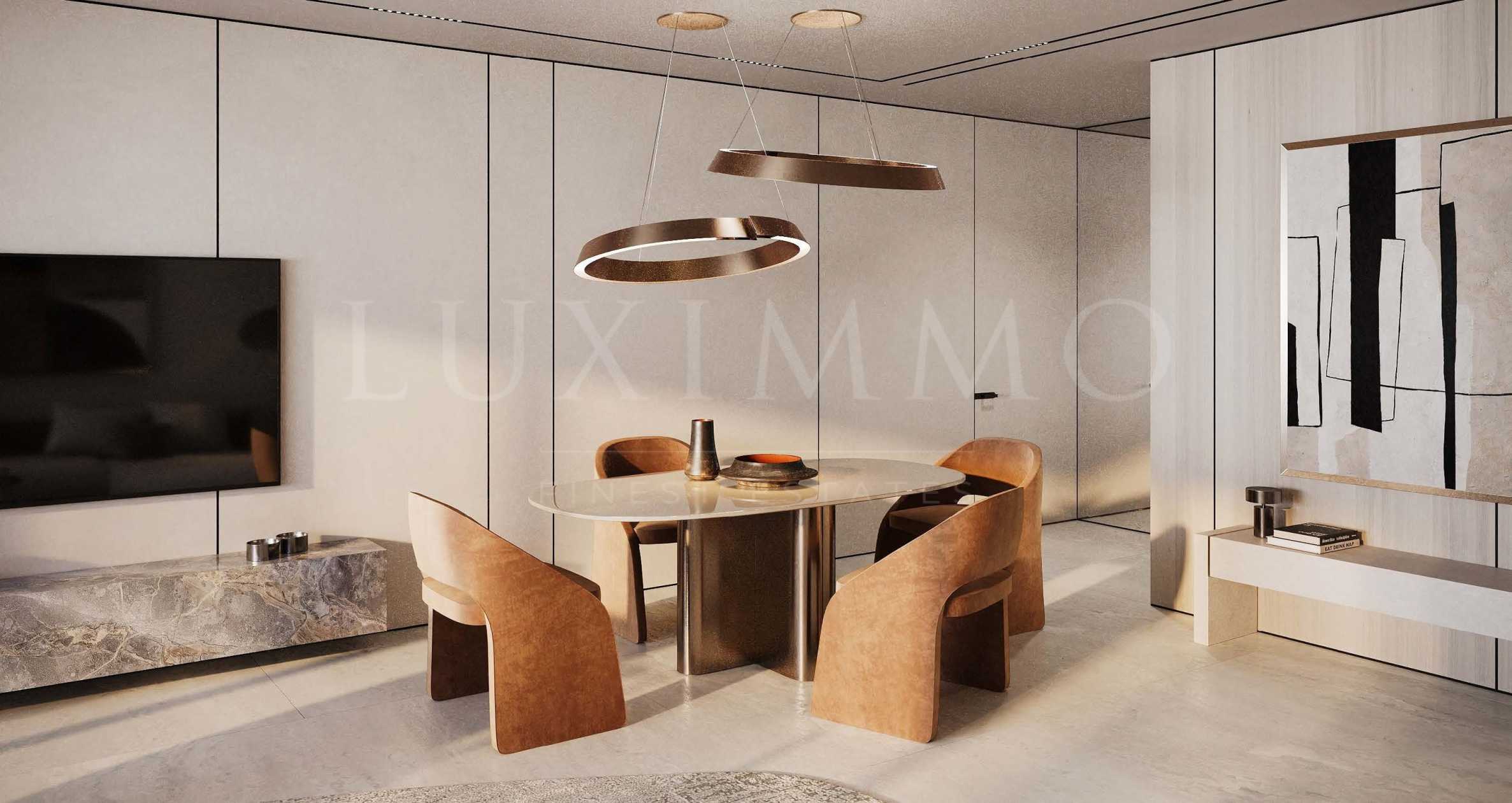 Апартаментът се предлага напълно обзаведен, с интериор, създаден от Trussardi Casa – марка, известна със своята неподправена италианска елегантност. Кухнята е оборудвана с електроуреди Miele, а банята – с аксесоари Gessi, гарантиращи безупречно качество. Всеки детайл – от меките мебели и дискретното осветление до фините декоративни акценти – е подбран, за да създаде усещане за завършен, луксозен дом, в който можете да се нанесете веднага.