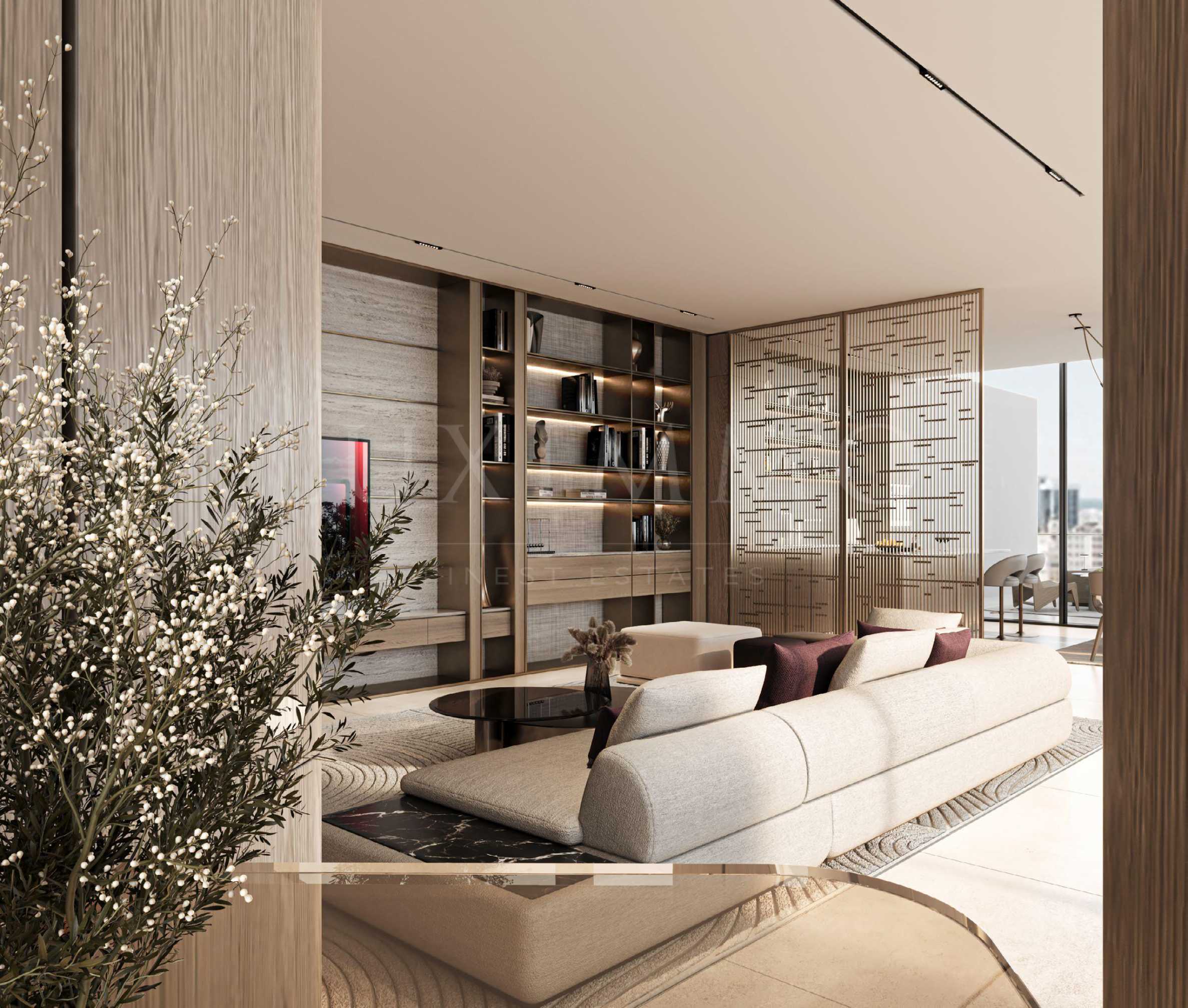 Апартаментът се предлага напълно обзаведен и оборудван с висококачествени електроуреди и дизайнерски мебели, подбрани с внимание към всеки детайл. Интериорните решения съчетават елегантност и функционалност, създавайки уютно и стилно пространство, подходящо както за живеене, така и за инвестиция