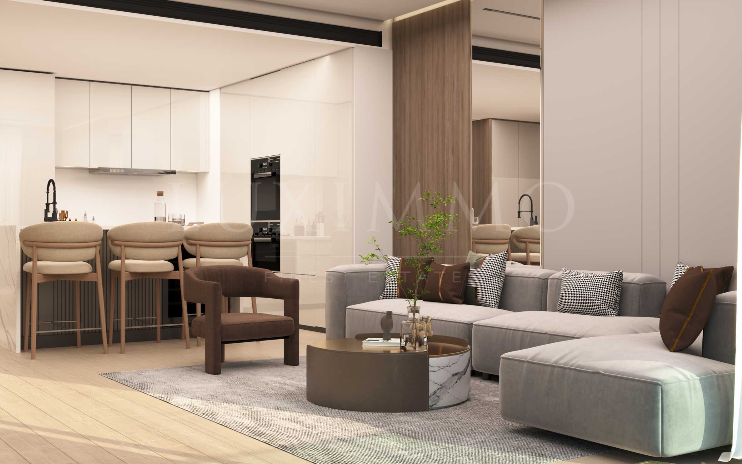 Жилището се предлага завършено "до ключ", включително входна и интериорни врати, подови настилки, осветление, обзаведена кухня и оборудвана баня. Използваните довършителни материали включват Bianco мрамор, матиран месинг с финa обработка, дъб в топъл бежов нюанс и декоративни стенни тапети, които осигуряват отлична основа за обзавеждане според личния стил и предпочитания на новите собственици.