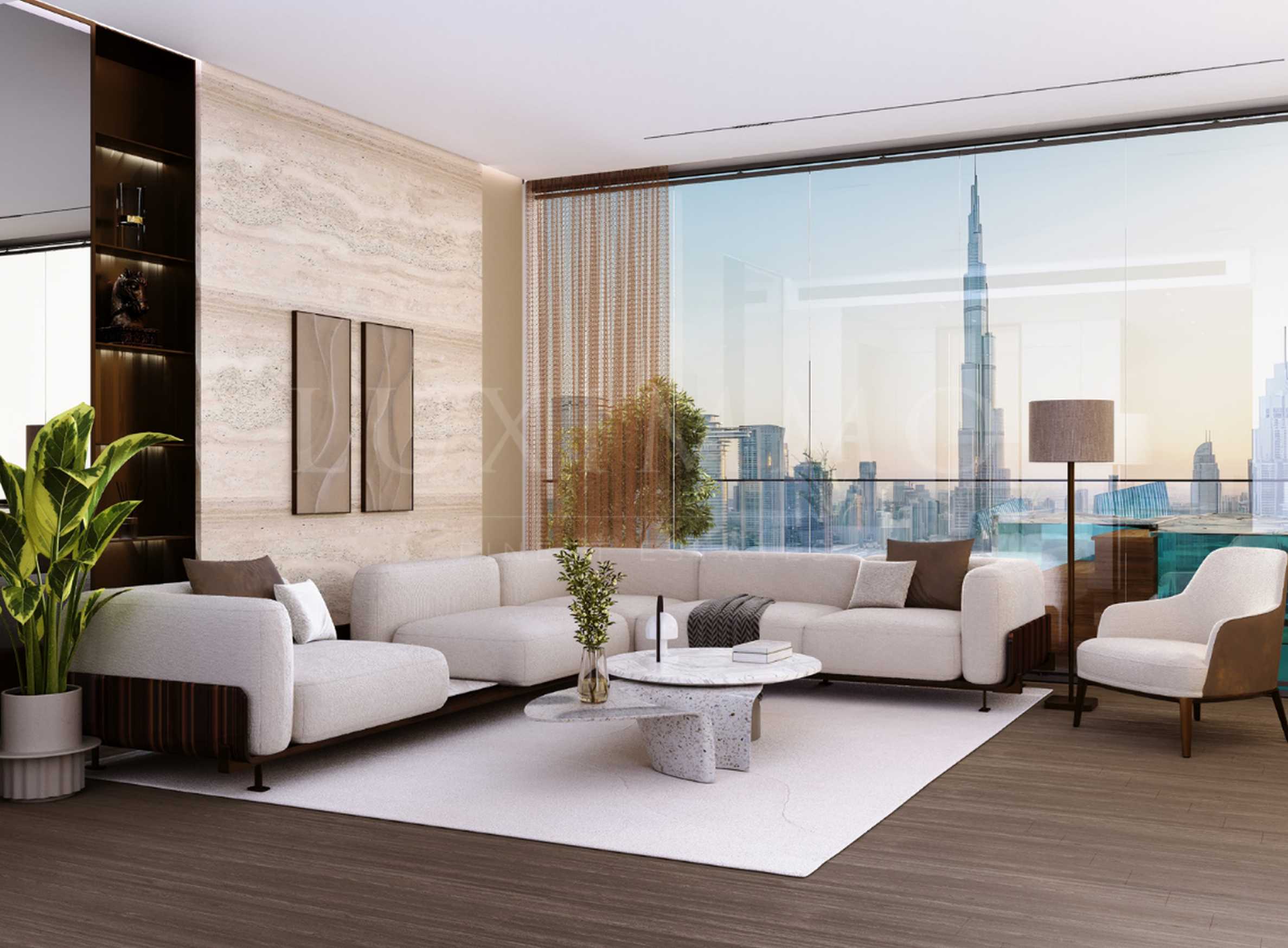 One by Binghatti се издига на внушителните 67 етажа, превръщайки се в отличителен акцент в силуета на района не само със своята височина, но и с артистичното фасадно осветление, което елегантно подчертава декоративните линии и архитектурната идентичност на сградата. Още с пристигането си жителите и техните гости са посрещнати от впечатляващо фоайе с рецепция, отличаващо се с внушителна височина, простор и усещане за представителност. Интериорните решения в общите части са подбрани с внимание към детайла, като съчетават мрамор, естествено дърво, травертин и изискани акценти от бронз и стъкло, създавайки атмосфера на съвременен лукс.
