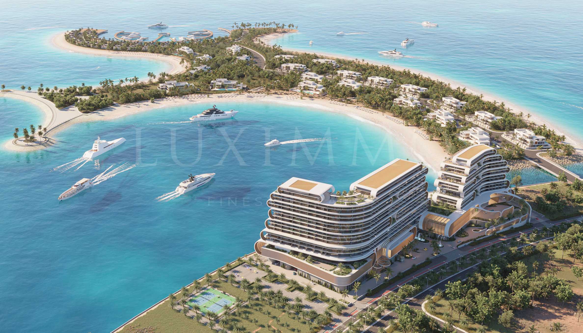 Престижният комплекс е разположен на фона на зашеметяващи плажове и лазурни води, олицетворяващи луксозния крайбрежен живот. Налични в проекта са ексклузивен набор от резиденции с 1, 2 и 3 спални, предлагащи на жителите директен достъп до плажа, панорамна гледка към морето и достъп до множество удобства и услуги. Апартаментите се предлагат напълно обзаведени и готови за отдаване под наем като ваканционни жилища.