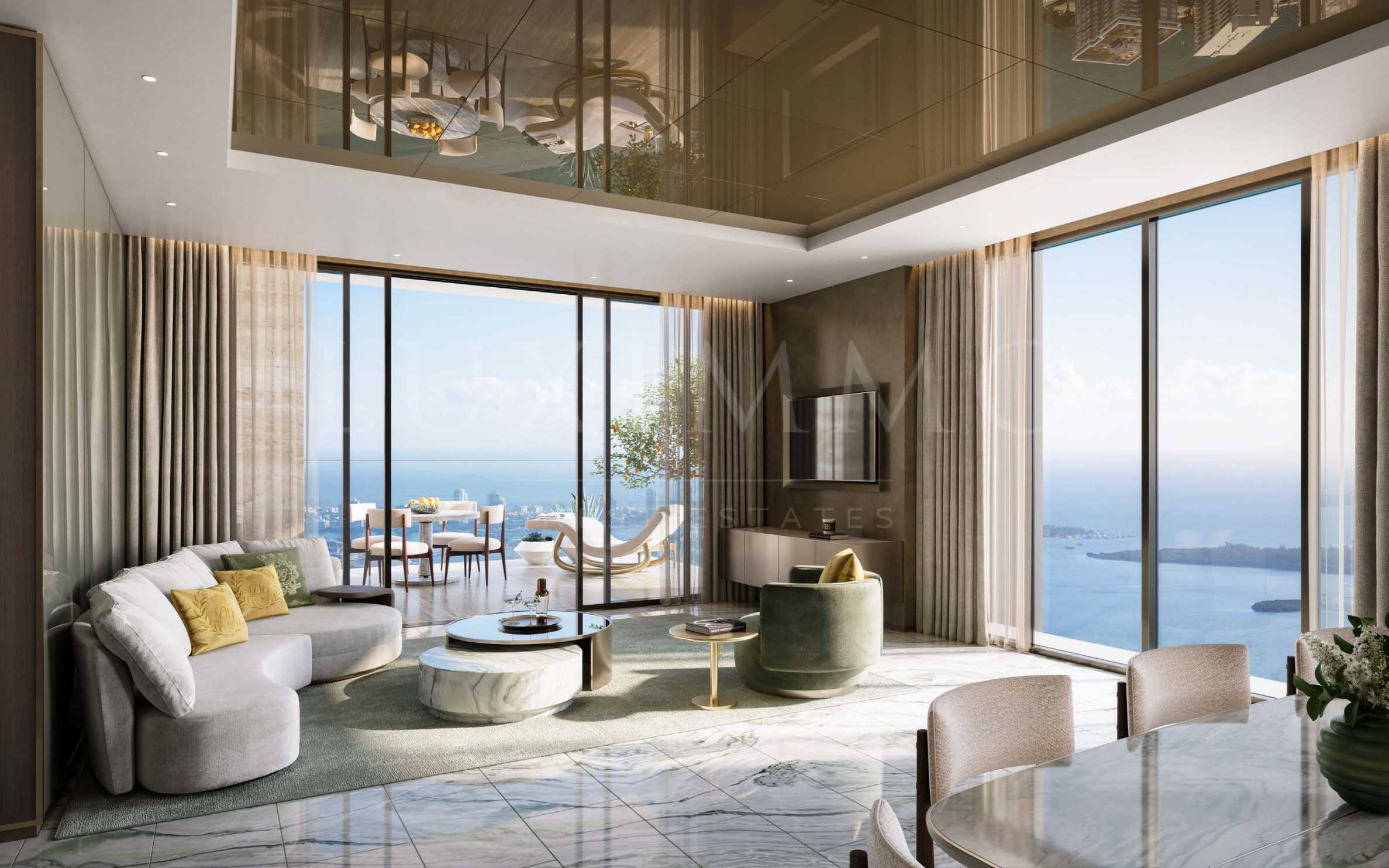 От апартаментите се разкриват панорамни гледки към Biscayne Bay, Атлантическия океан и Downtown Miami, където небостъргачите създават магичен пейзаж, особено при залез.